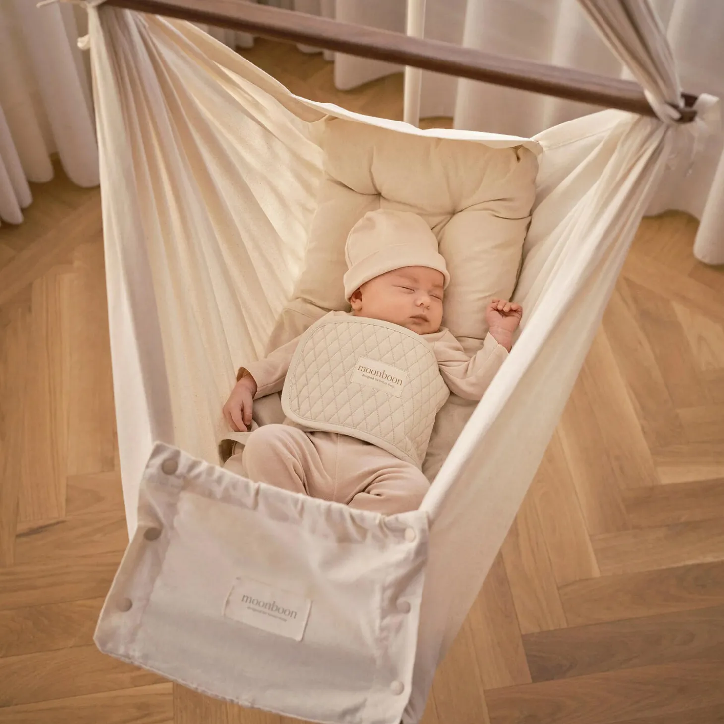 Det er helt normalt, at babyer er aktive, mens de sover. Men når de vrider sig rundt, kan det både forstyrre deres søvn og søvnmønstre.Med vores bløde og quiltede Madras Fixi støttebælte kan du hjælpe din baby med at ligge mere stille, når han/hun sover, så han/hun får en bedre hvile og søvn.Madras Fixi er lavet til vores vugge, slyngevugge og tvillingeslyngevugge og er designet med to forskellige bælter: Et vævet bomuldsbælte til at gå rundt om madrassen i bunden og et quiltet økologisk bomuldsbælte, der blidt spændes om din babys mave med velcro i toppen.Bæltet er designet og udviklet af søvneksperter i Danmark og lavet af 100% økologisk GOTS-certificeret bomuld, hvilket giver dig ro i sindet, når du ved, at din baby får en god søvn uden afbrydelser.