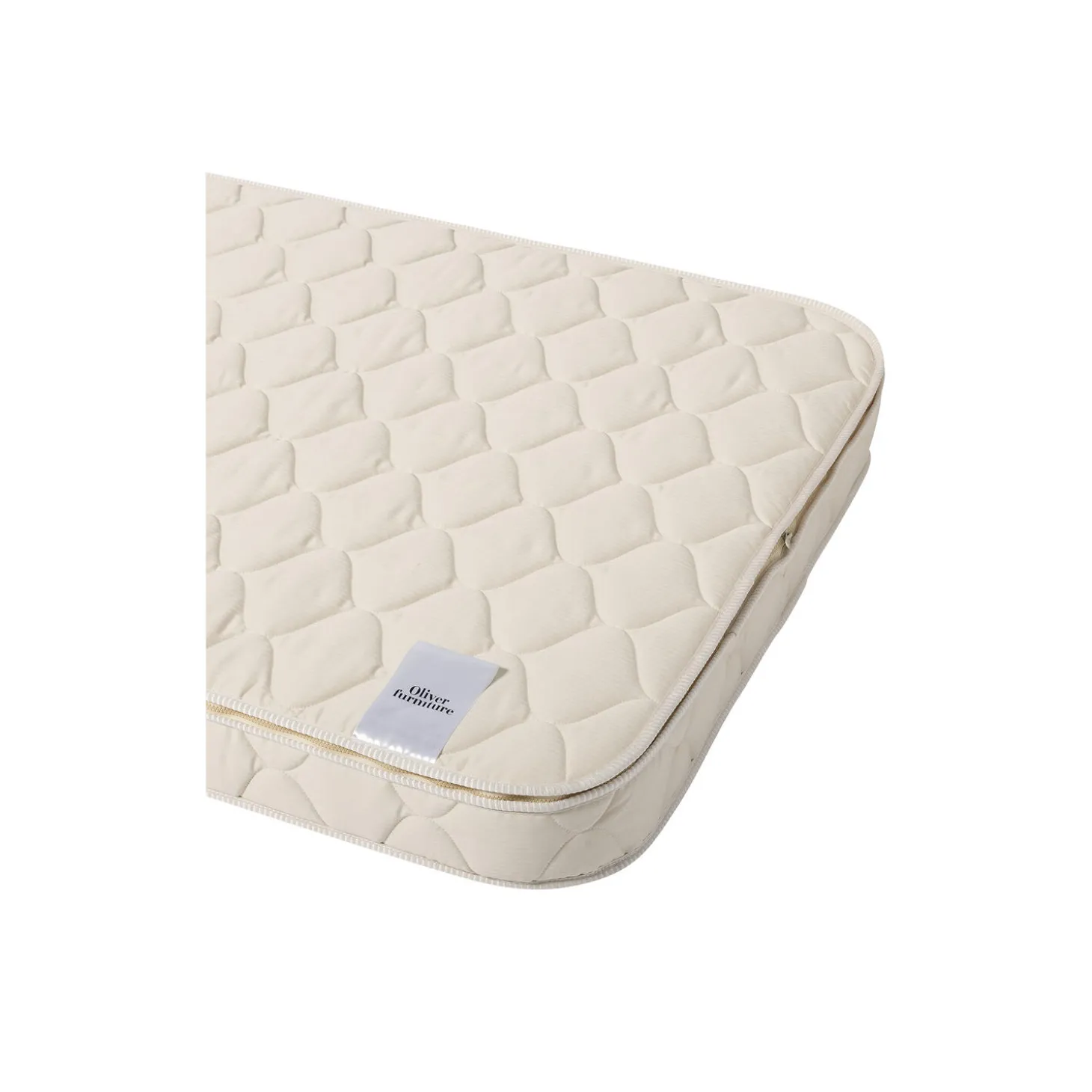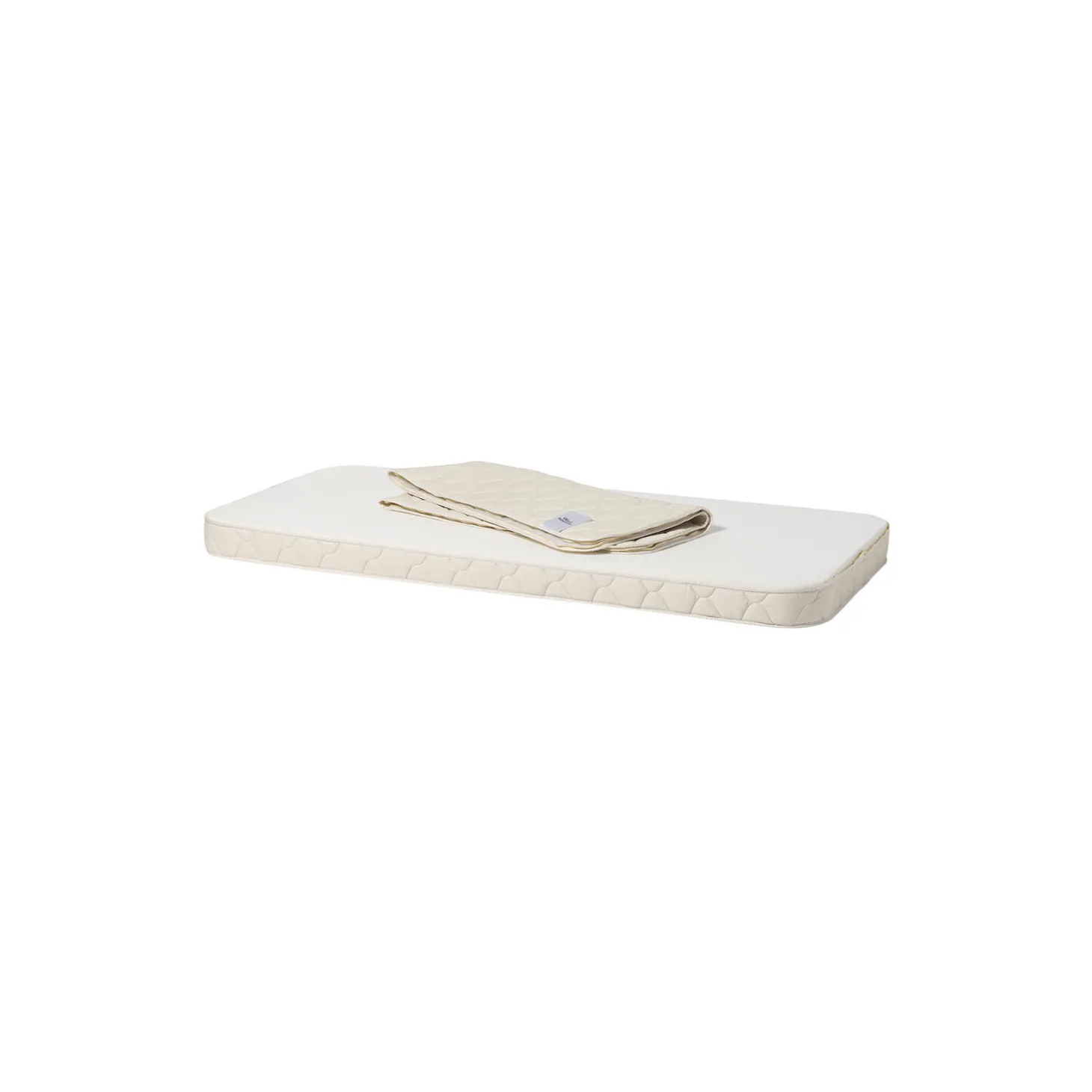 Børn har en gennemsnitlig nattesøvn på ca. 12 timer, hvor dagens mange indtryk og oplevelser bearbejdes. En koldskumsmadras giver den lille krop al mulighed for at restituere og lade op til en ny dag fuld af nye eventyr.Madrassen giver god støtte til hele kroppen, så barnet ligger trygt og behageligt i alle stillinger. Madrassen har ikke sovezoner, som mange voksenmadrasser har. Sovezoner giver særlig støtte til specifikke steder på kroppen, men da børn oftest sover som en helikopter, vender og drejer sig mange gange i løbet af natten, er sovezoner ikke nødvendige.Små børn er endnu ikke særlig gode til at regulere deres egen kropstemperatur. Det åbenporede koldskum hjælper luften med at cirkulere gennem madrassens kerne og transporterer fugt væk og hjælper dermed barnet med at regulere kropstemperaturen.Støv og skidt har meget svært ved at slå sig ned i madrassen. Med et vaskbart betræk, har madrassen et højt hygiejneniveau og er velegnet til allergiske personer. Hvis uheldet er ude, kan man endda nøjes med at vaske den øverste del af det todelte betræk, da det er forsynet med en påsat lynlås, der gør det nemt at få det af og på.Madraskernen er fremstillet af Oeko-Tex-certificeret europæisk HR-koldskum, som er meget komfortabelt, åndbart og allergivenligt, genvinder let sin form efter brug og har en høj bæreevne. Rumvægt 28,5-33 kg/m3.Betrækket er fremstillet af GOTS-certificeret økologisk sildebensbomuld, quiltet med et lag Oeko-Tex-certificerede genanvendte PET-fibre. Den ene del er på indersiden udstyret med et åndbart, vandtæt lag af Oeko-Tex certificeret bomuld lamineret med TPU-folie (termoplastisk polyuretan). En label angiver den vandtætte side.Det aftagelige betræk kan deles i to dele og maskinvaskes ved 40°.Madrassen er produceret i Europa og overholder de strenge EU-krav for sikkerhed og sundhed. Madrassen er testet i henhold til sikkerhedsstandarden EN 16890 og i overensstemmelse med brandsikkerhedsstandarder EN 71-2 og BS7177.