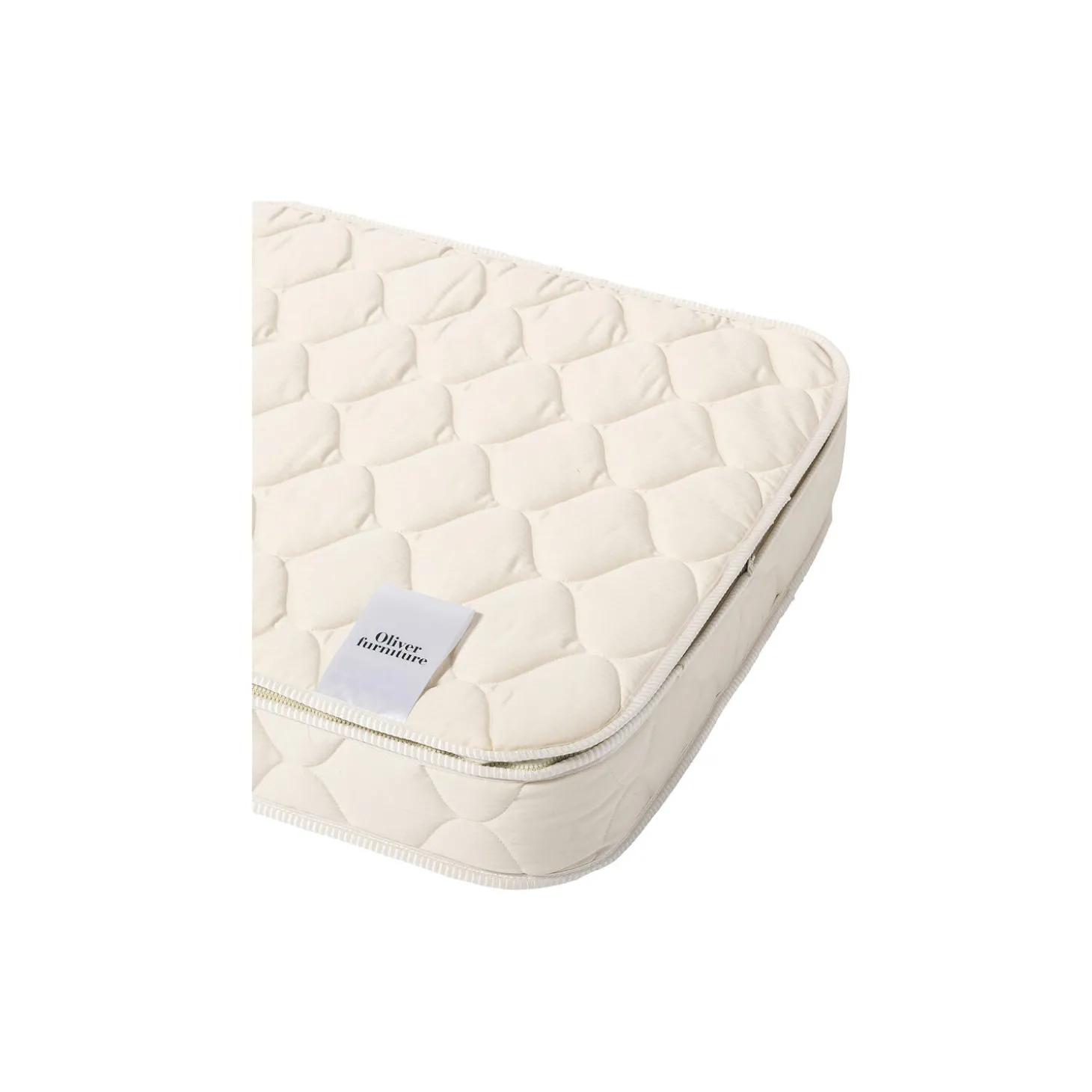 Børn har en gennemsnitlig nattesøvn på ca. 12 timer, hvor dagens mange indtryk og oplevelser bearbejdes. En koldskumsmadras giver den lille krop al mulighed for at restituere og lade op til en ny dag fuld af nye eventyr.Madrassen giver god støtte til hele kroppen, så barnet ligger trygt og behageligt i alle stillinger. Madrassen har ikke sovezoner, som mange voksenmadrasser har. Sovezoner giver særlig støtte til specifikke steder på kroppen, men da børn oftest sover som en helikopter, vender og drejer sig mange gange i løbet af natten, er sovezoner ikke nødvendige.Små børn er endnu ikke særlig gode til at regulere deres egen kropstemperatur. Det åbenporede koldskum hjælper luften med at cirkulere gennem madrassens kerne og transporterer fugt væk og hjælper dermed barnet med at regulere kropstemperaturen.Støv og skidt har meget svært ved at slå sig ned i madrassen. Med et vaskbart betræk, har madrassen et højt hygiejneniveau og er velegnet til allergiske personer. Hvis uheldet er ude, kan man endda nøjes med at vaske den øverste del af det todelte betræk, da det er forsynet med en påsat lynlås, der gør det nemt at få det af og på.Madraskernen er fremstillet af Oeko-Tex-certificeret europæisk HR-koldskum, som er meget komfortabelt, åndbart og allergivenligt, genvinder let sin form efter brug og har en høj bæreevne. Rumvægt 28,5-33 kg/m3.Betrækket er fremstillet af GOTS-certificeret økologisk sildebensbomuld, quiltet med et lag Oeko-Tex-certificerede genanvendte PET-fibre. Den ene del er på indersiden udstyret med et åndbart, vandtæt lag af Oeko-Tex certificeret bomuld lamineret med TPU-folie (termoplastisk polyuretan). En label angiver den vandtætte side.Det aftagelige betræk kan deles i to dele og maskinvaskes ved 40°.Madrassen er produceret i Europa og overholder de strenge EU-krav for sikkerhed og sundhed. Madrassen er testet i henhold til sikkerhedsstandarden EN 16890 og i overensstemmelse med brandsikkerhedsstandarder EN 71-2 og BS7177.
