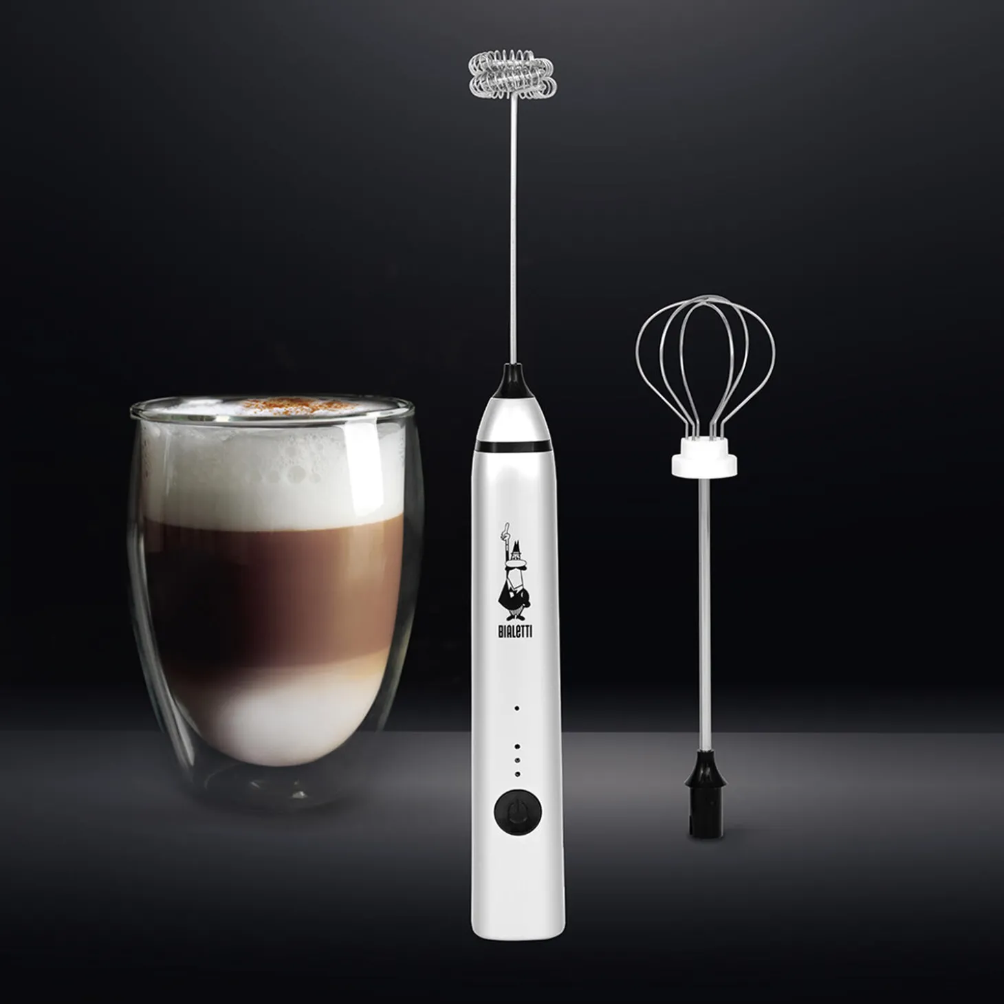 TRE HASTIGHEDSNIVEAUER, Skift hastighed efter ønske med en enkelt knap på håndtaget. USB-OPLADER, indbygget og let genopladeligt batteri. UDSKIFTELIGE PISKEHOVEDER, Afhængigt af tilberedningen kan du vælge enten det dobbelte piskeris eller ballonpiskeriset for at opnå de bedste resultater. GARANTERET RESULTAT, med mælk og de fleste vegetabilske drikke*. Den er også perfekt til at piske æg og lave proteinshakes, milkshakes, cocktails og smoothies.