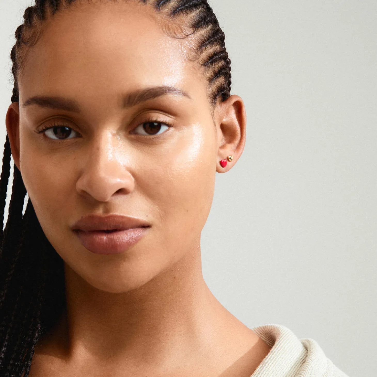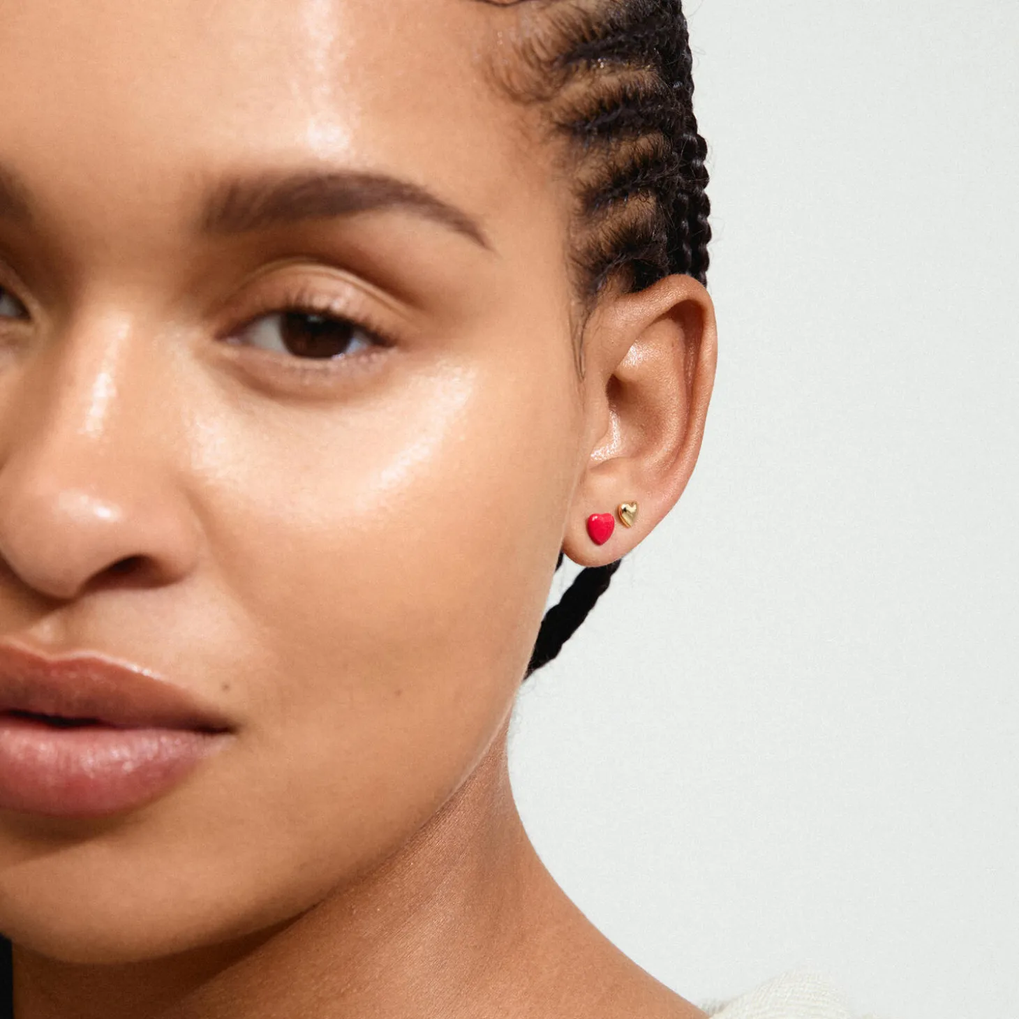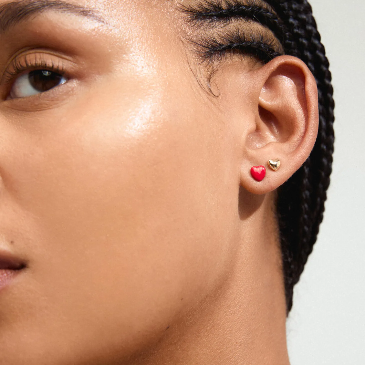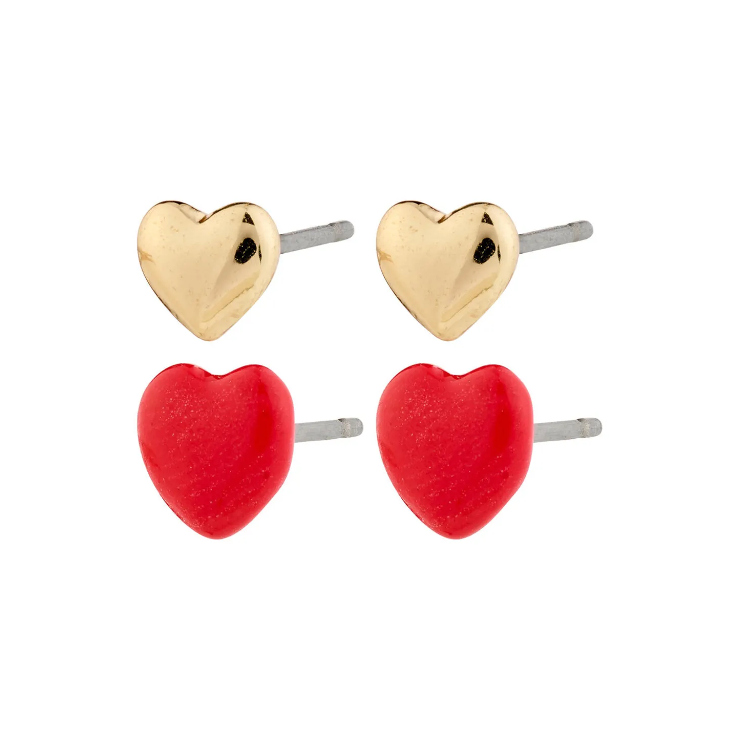 Get ready to shine with love, med et super cute sæt hjerte ørestikker fra Pilgrim. Her får du 2 sæt i ét: det ene par hjerter er guldbelagt med smuk shiny finish, – det andet par har en blank rød emalje. Style et unikt ear curation look med de små hjerte-studs og mix dem med dine fave hoops for et personalized udtryk – eller spred a little love og del sættet med din BFF. Fremstillet af 95% genanvendte materialer er de et styling-valg du kan være stolt af.
