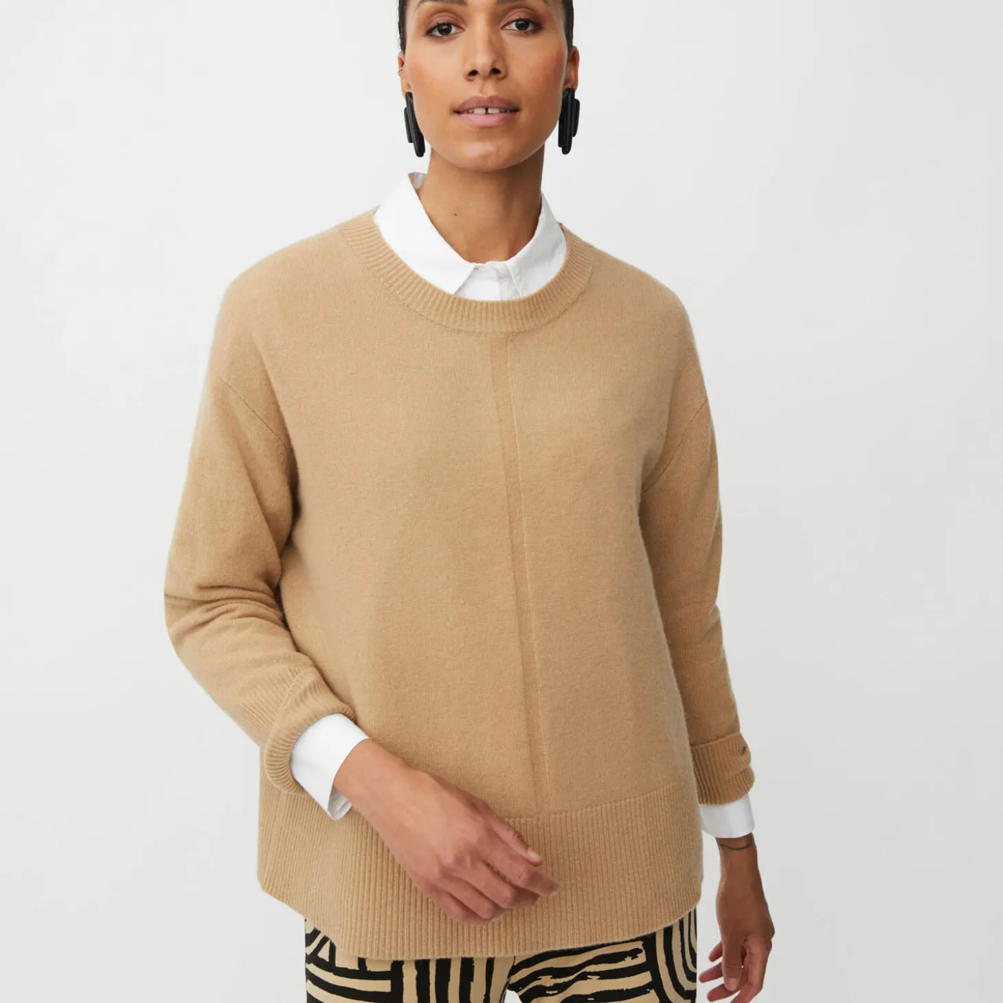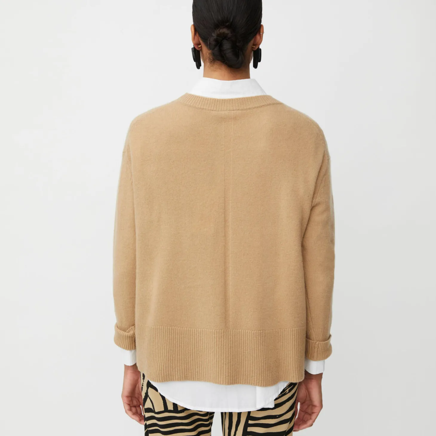 Går du efter sikre klassikere, vil du elske denne enkle turkise strik. Den er strikket i det blødeste uld og designet med lige linjer, sænkede skuldersømme og ribkanter, der giver et afslappet udtryk.