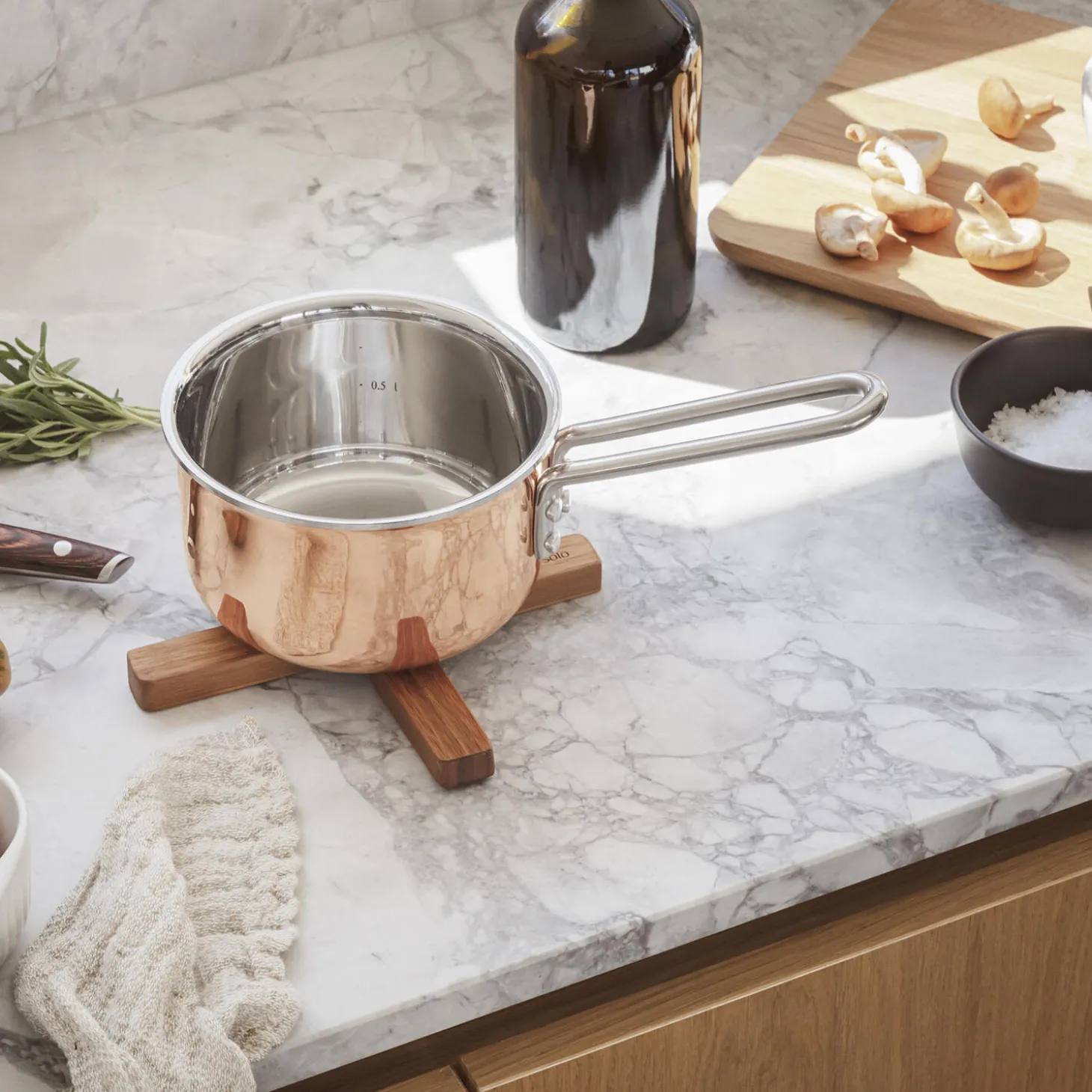 Bordskåneren kan lægges over kryds under gryder og mindre fade, og deles i to under større fade og eksempelvis bradepander. Takket være de indbyggede magneter følger bordskåneren med gryden rundt på bordet, og efter brug fylder bordskåneren minimalt i skuffen. Bordskåneren er fremstillet af FSC®️-certificeret karboniseret bambus har indbyggede magneter. Den tåler ikke maskinopvask.
