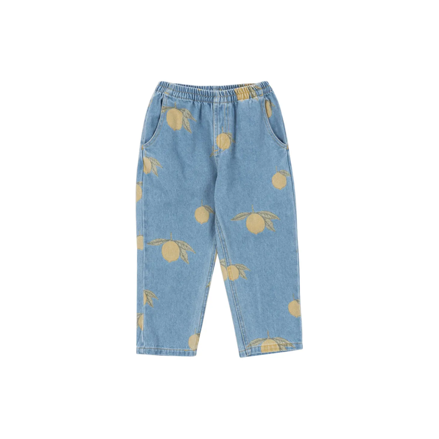 Soft denim pants with an elastic waist. Made in 100% organic cotton. Washing instructions: Please wash product separately, as it may bleed colour. GOTS, Organic, certified by CU1094701.