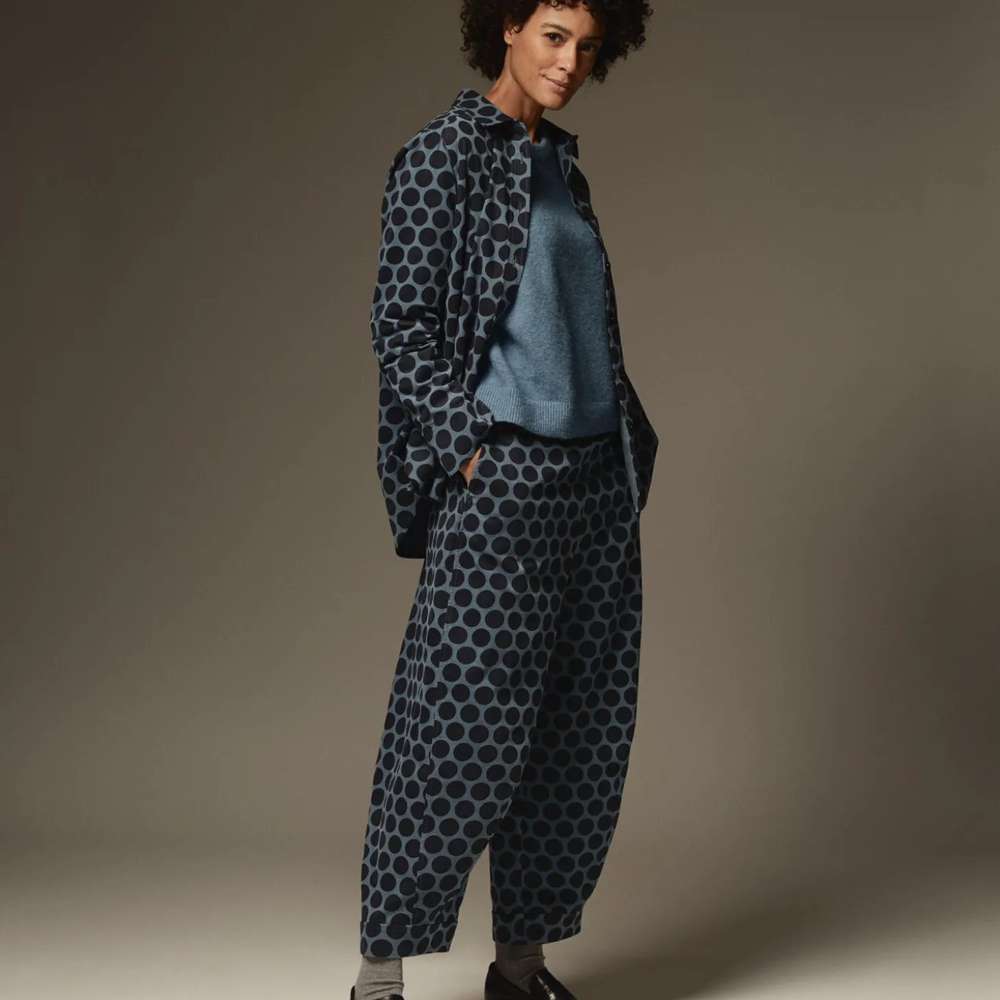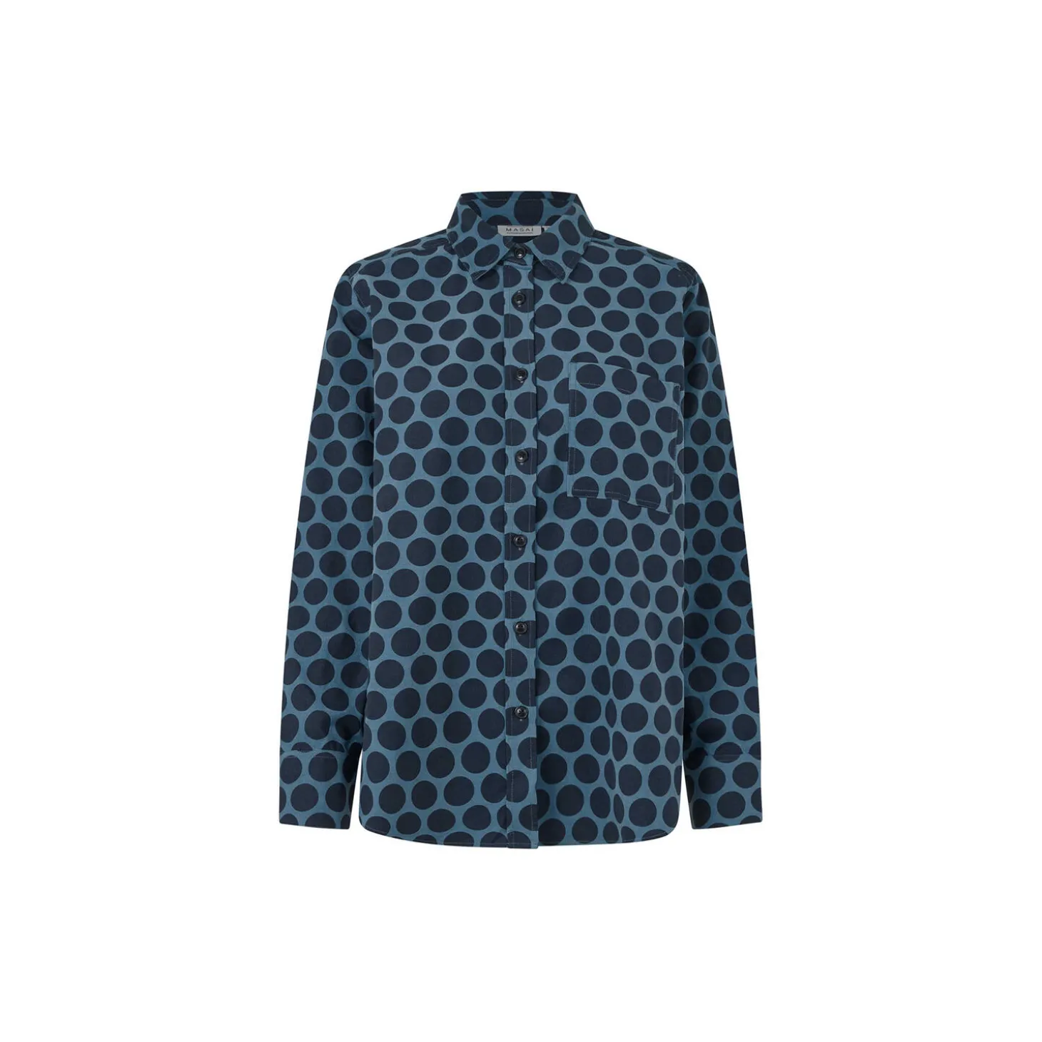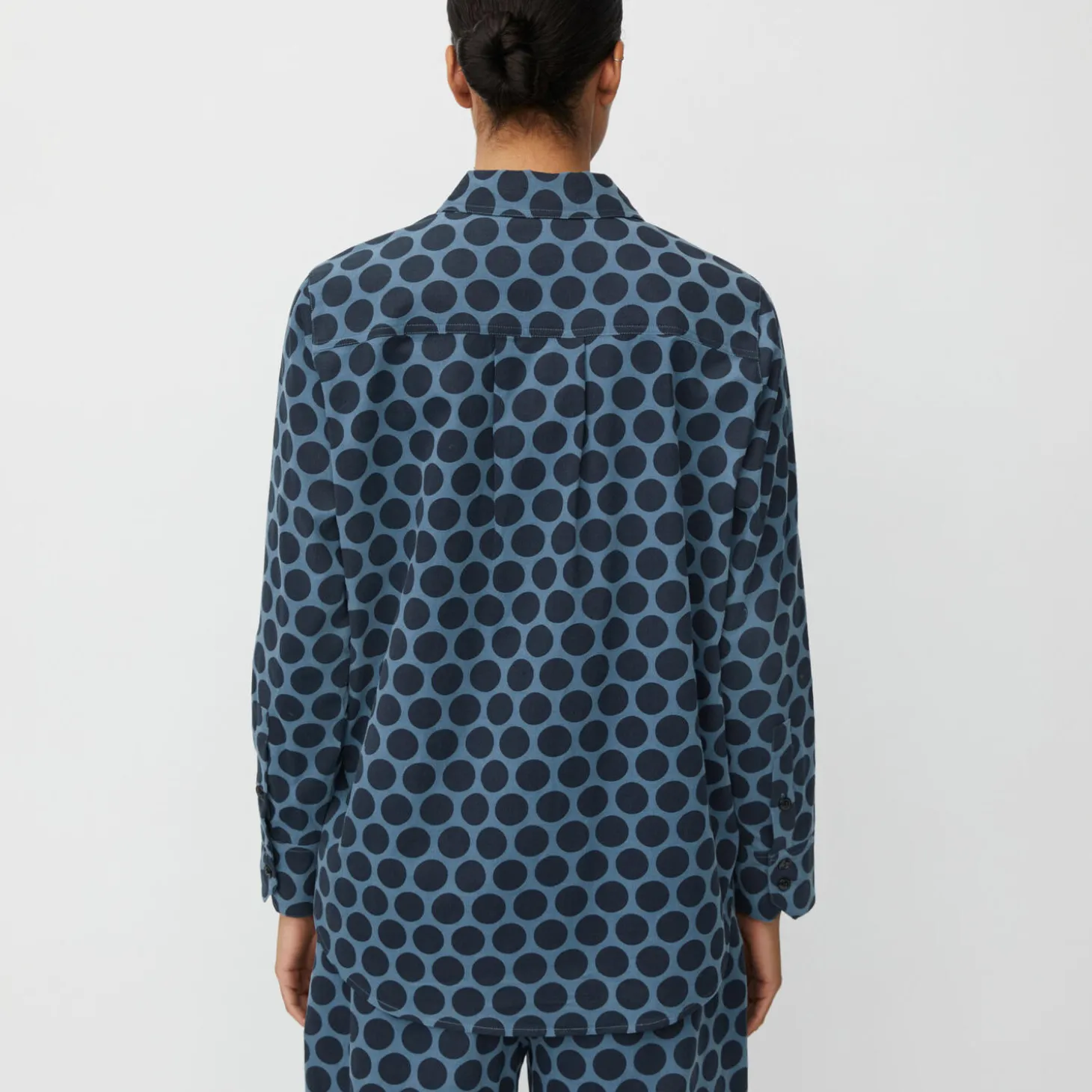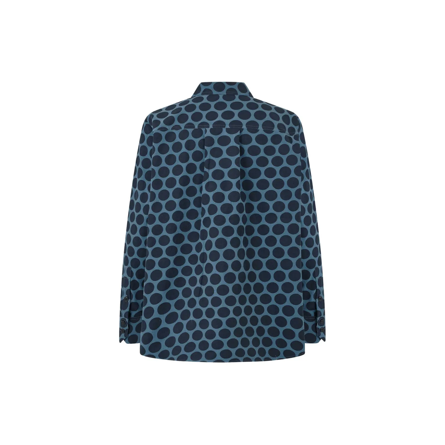 Vær flot i fløjl! Denne skjorte er dekoreret med polkaprikker og har et klassisk snit, så den falder flot og lige ned. Bemærk også brystlommen, afrundingen forneden og det lidt længere bagstykke.