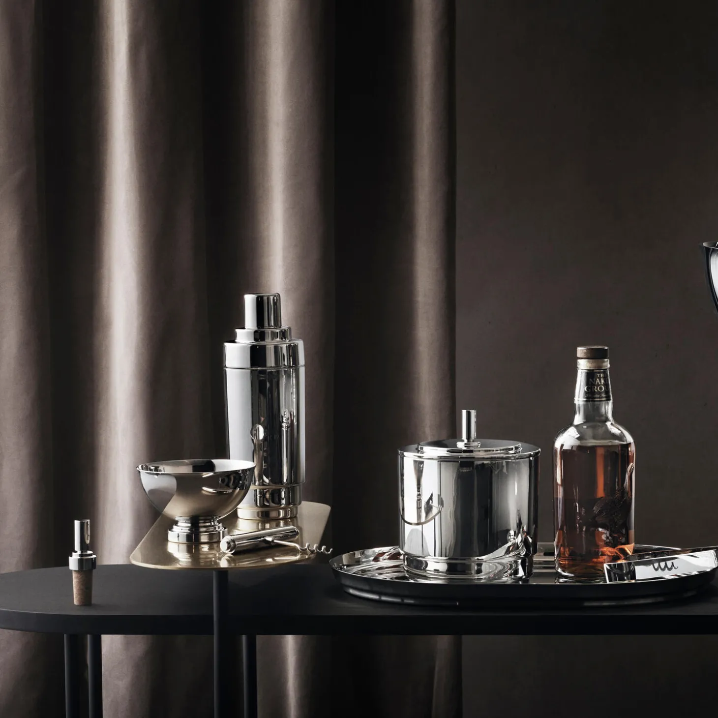 Der er ikke meget, der lyder lige så glamourøst som en cocktail, der bliver rystet på den rigtige måde. Og dén stemning skaber du let med den smukke cocktailshaker Manhattan fra Georg Jensen. Shakeren er inspireret af de brølende 1920’ere i New York, hvis tidlige arkitektur også er domineret af stramme geometriske strukturer og rene linjer.
