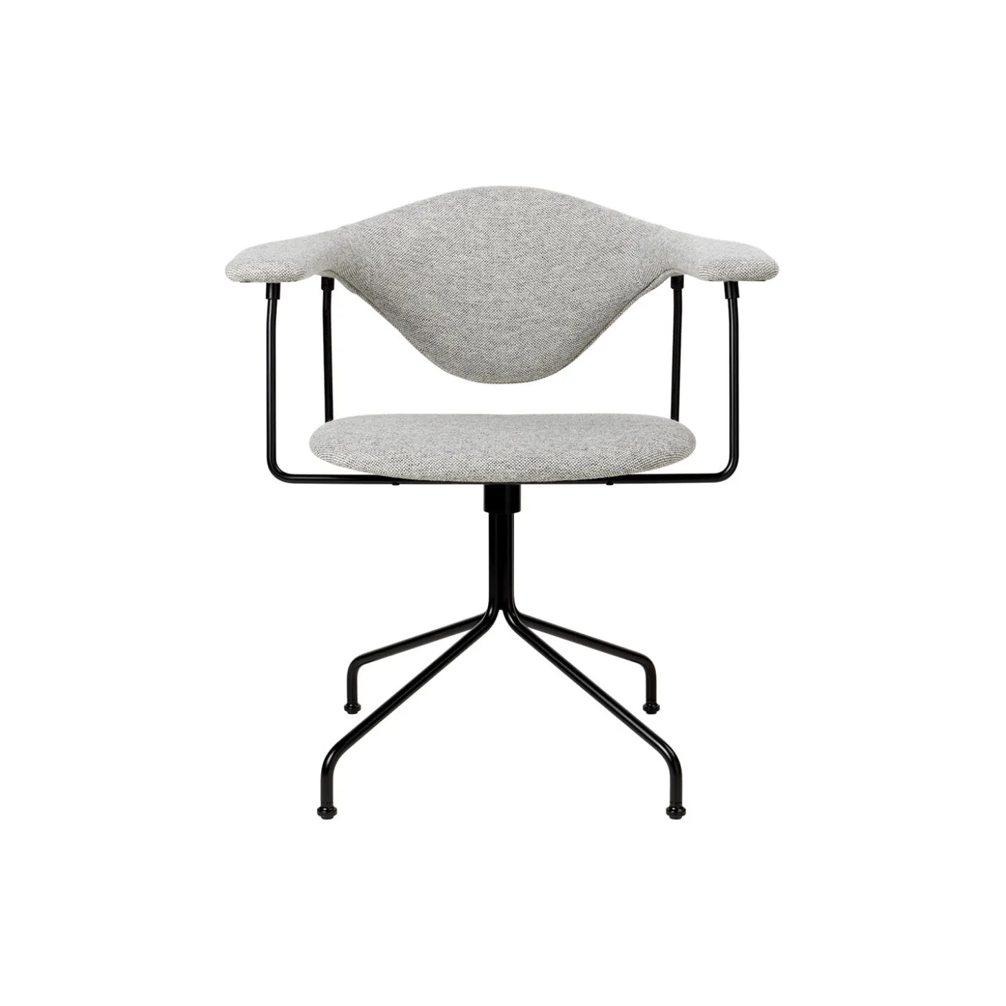 Masculo Meeting Chair with Swivel Base fuldpolstret i Hallingdal 65 116 tekstil af Kvadrat og stel i olieret amerikansk valnød fra GUBI. Farve: Hallingdal 116/black semi matt. Mål: H: 74 x B: 69 x D: 59 cm. Siddehøjde: 45 cm. Design: GamFratesi.