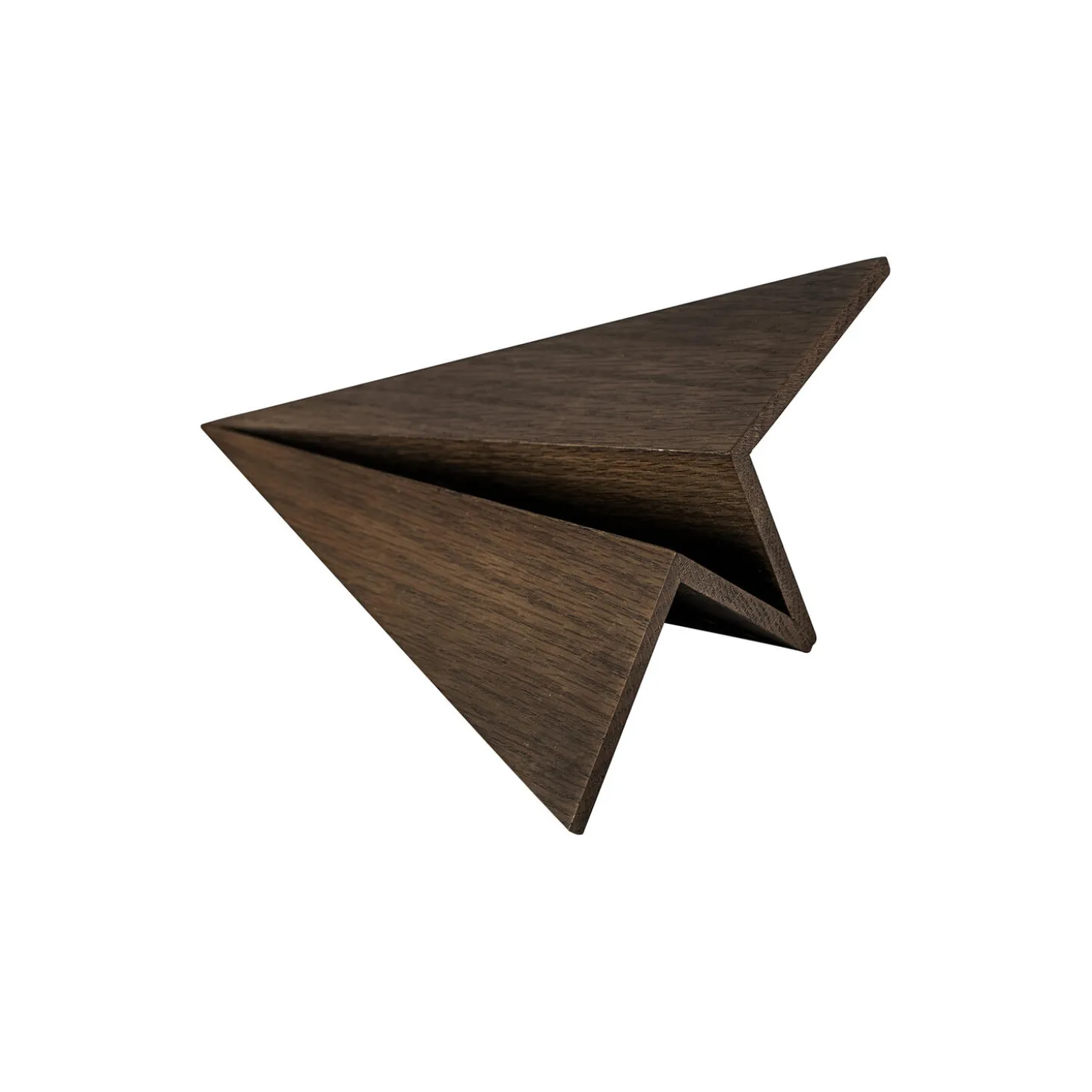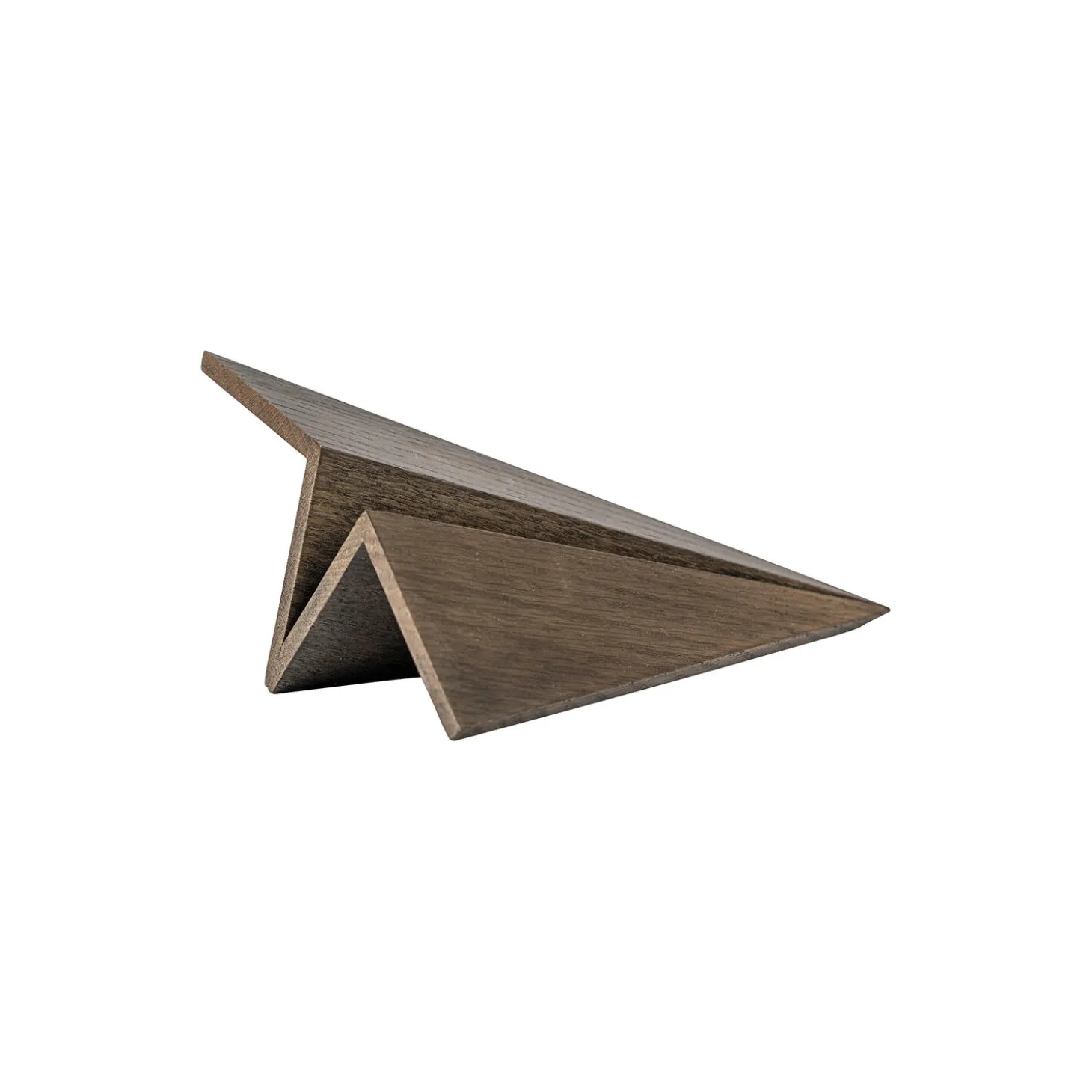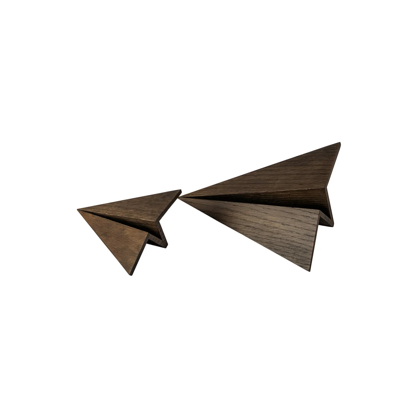 Maverick figur i røgbejdset eg fra Boyhood. Farve: røgbejdset eg. Mål: H: 5 x L: 14 x B: 10,6 cm. Design: Jakob Burgsø. Der var ingen grænser for, hvor man kunne flyve hen, når man havde foldet den perfekte papirflyver, som kunne svæve rigtig langt!Maverick er et lysende minde om dengang, der kun skulle et enkelt kast til for at komme ud i verden, og man var i Afrika, Amerika og Kina på ingen tid. Papirflyveren er her fremstillet i massivt egetræ. Let og luftig – altid klar til afgang.Med en tynd nylontråd kan du hurtigt få din Maverick ud at flyve…