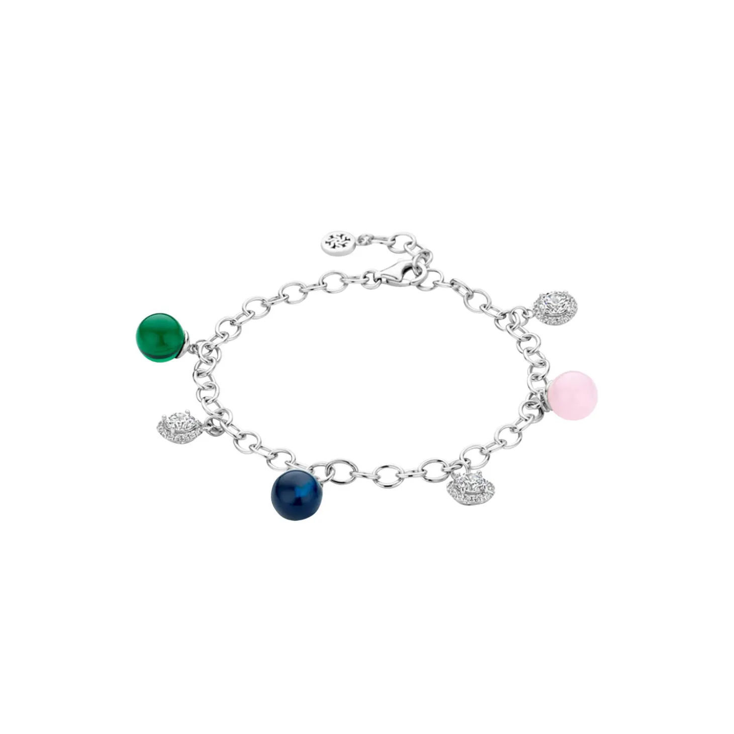 Maxine armbåndet kombinerer den populære Figaro-serie med sine flotte farver samt den klassiske Romance-serie. Elementerne er fordelt ud på den smukke voluminøse kæde. Armbåndet er produceret i 925 genanvendt sterlingsølv med klare og farvede zirkonia. Armbåndet måler fra 17/19 cm og er justerbart.
