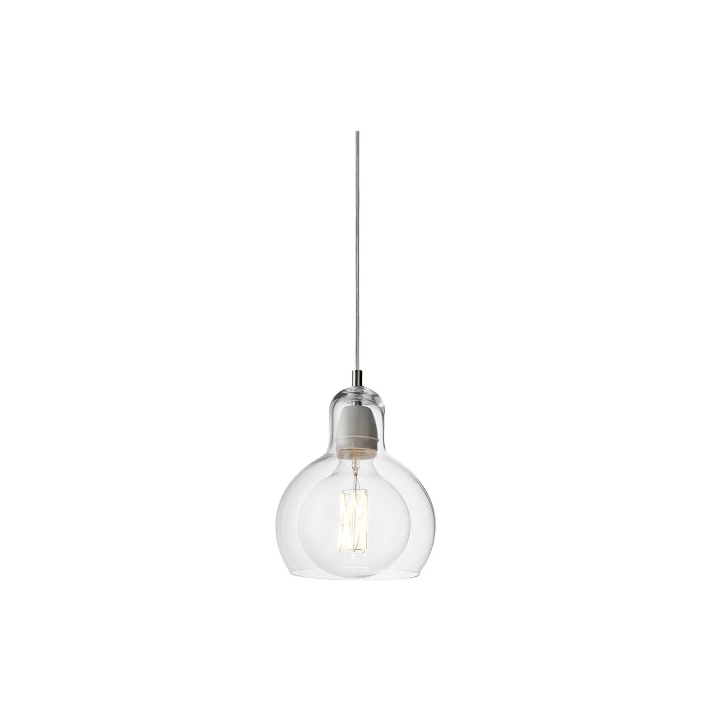 Mega Bulb SR2 pendel i mundblæst glas fra &Tradition. Farve: klar med klar ledning. Mål: H: 23 x Ø 18 cm. Design: Sofie Refer.