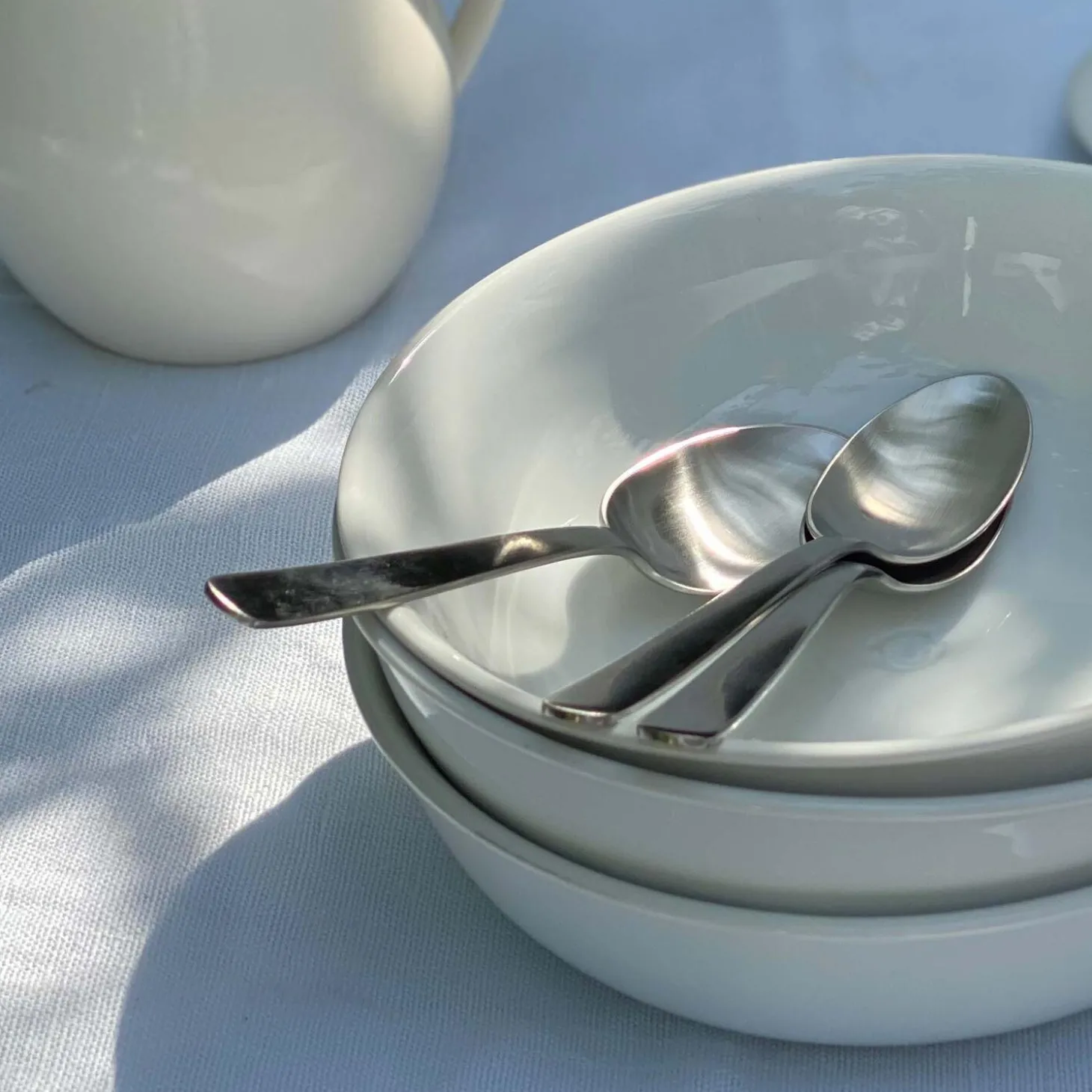 Den dybe middagsske i Grand Prix-serien er skabt til at rumme supper og grovere retter. Det ovale blide hoved er dybt nok til at indeholde lækre stykker af alt fra grøntsager til fisk og kød fra gullasch, der sammen med lidt af suppen giver en smagsvariation af alle rettens elementer på samme tid. En gammeldags æblekage, eller en crumble til dessert, er også som skabt til middagsskeen. Skeens robuste form kan synes næsten anonym, men ved nærmere eftersyn er den rig på detaljer. Den mest udsøgte detalje ses på skeens hoved. I stedet for at runde kanten af, hvor skeen møder munden, lavede Kay Bojesen kanten flad. Dette hæmmer, at skeen drypper. Atter er det lykkes for Kay Bojesen at forene form og funktion. Middagsskeen er lavet i mat rustfrit stål og måler 19,5 cm. Skeen er designet af Kay Bojesen og tilhører bestikserien Grand Prix.