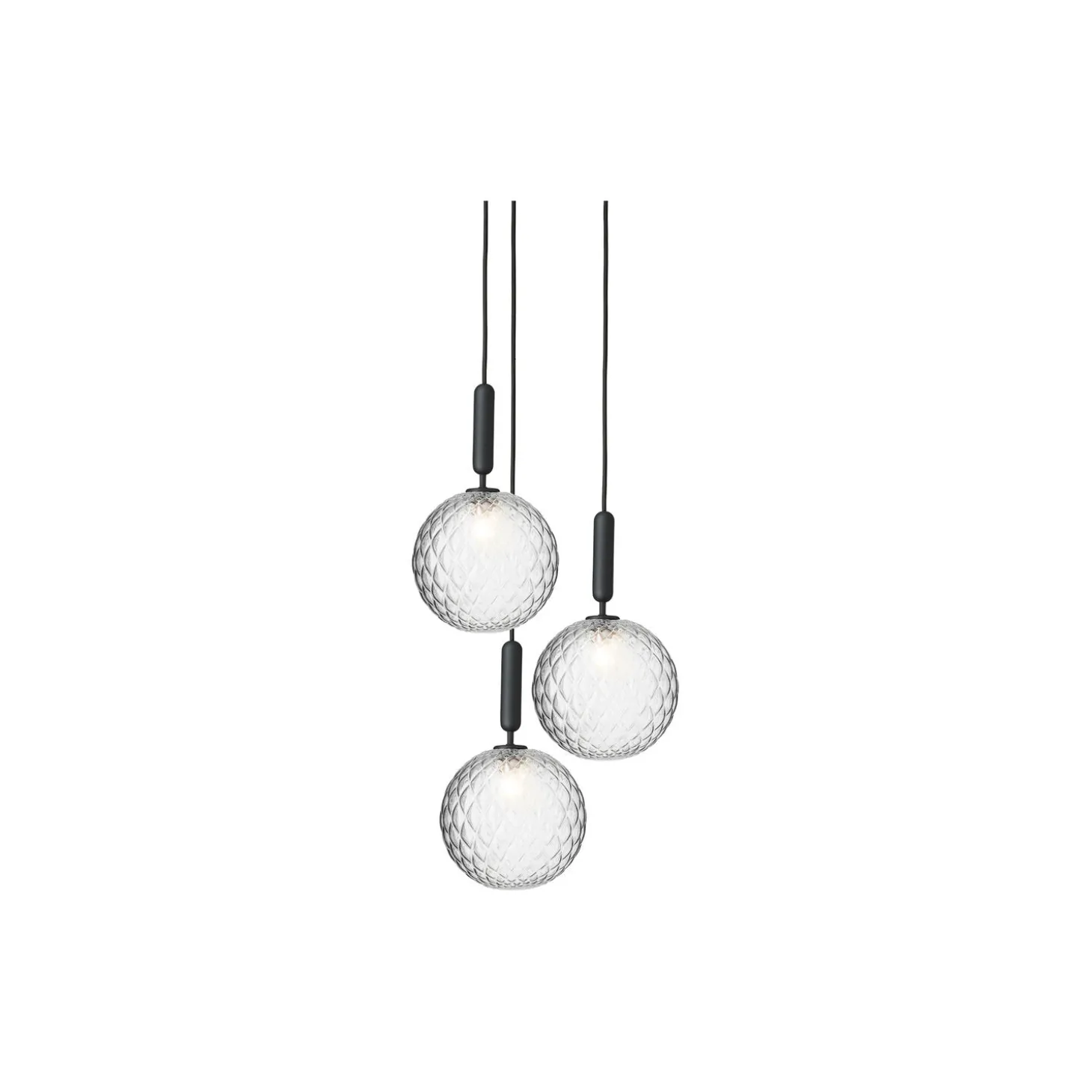 Miira Large har tyngde og fylde, og skaber derved et fint samspil med den eksisterende Miira pendel, som i udtryk er let og slank. På trods af at den nye Miira Large er større end den eksisterende Miira kollektion, har den med sin enkle formgivning bevaret et sanseligt og elegant udtryk. Optikglasset med præget mønster giver et legende lys, og sat op imod den fyldige mørkegrå lak, skabes en fin kontrast. Miira Large komplimenterer den samlede Miira-kollektion og tilfører diversitet og dynamik, samtidig med, at roen og balancen i kollektionen bevares.