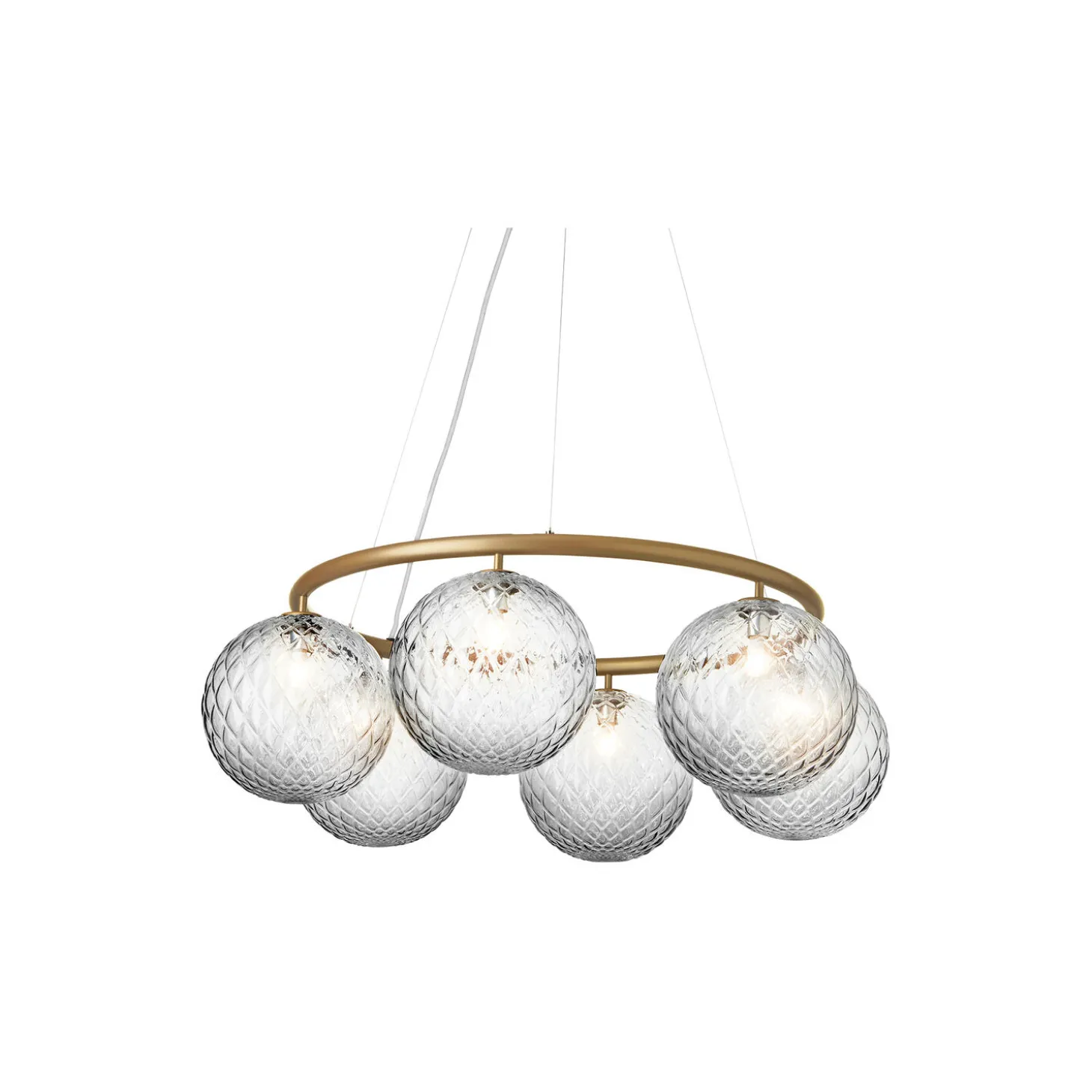 Miira 6 Circular Optic har et klassisk udtryk og er designet til at hænge lavt eller højt fra loftet. Højden justeres nemt fra 20 til 250 cm via et specielt wiresystem. Miira-lysekronen består af en pulverlakeret metalring i en brass-farve, hvorfra mundblæste glaskupler i klart optisk glas spreder et sanseligt lys. Den enkle og klassiske formgivning gør lysekronen anvendelig i mange indretningssammenhænge. Den har en diameter på 80 cm, der gør den velegnet over spisebordet eller sofaområdet.