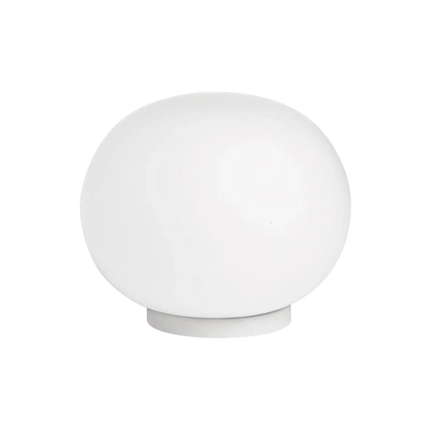 Mini Glo-Ball bordlampe i opal glas fra Flos. H: 9 cm. Design: Jasper Morrisson i 2003. Leveres eksklusiv lysdæmper.