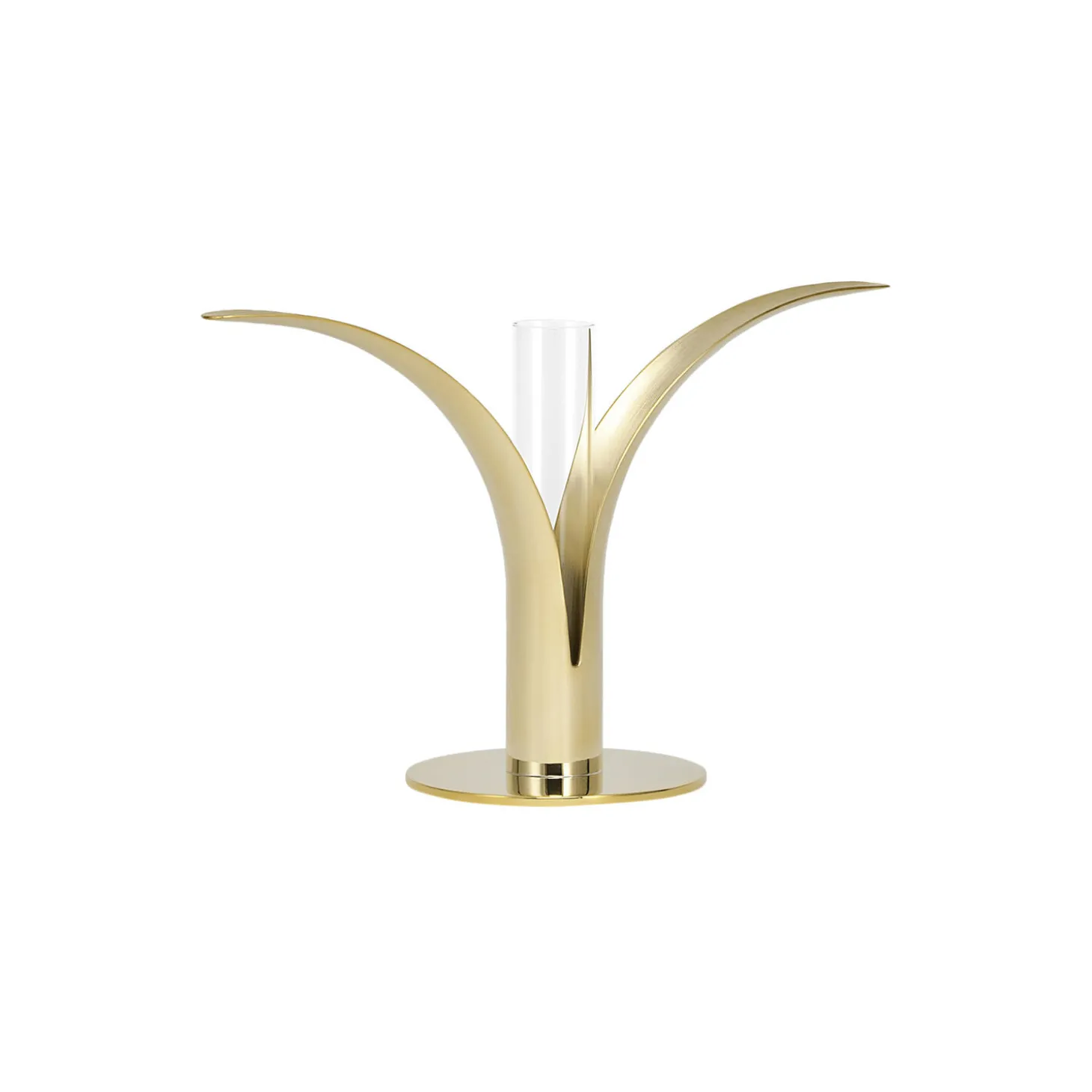 The glass vase was an optional accessory to the original model of the Lily Candlestick, designed by Ivar Ålenius Björk for the world fair in New York 1939.