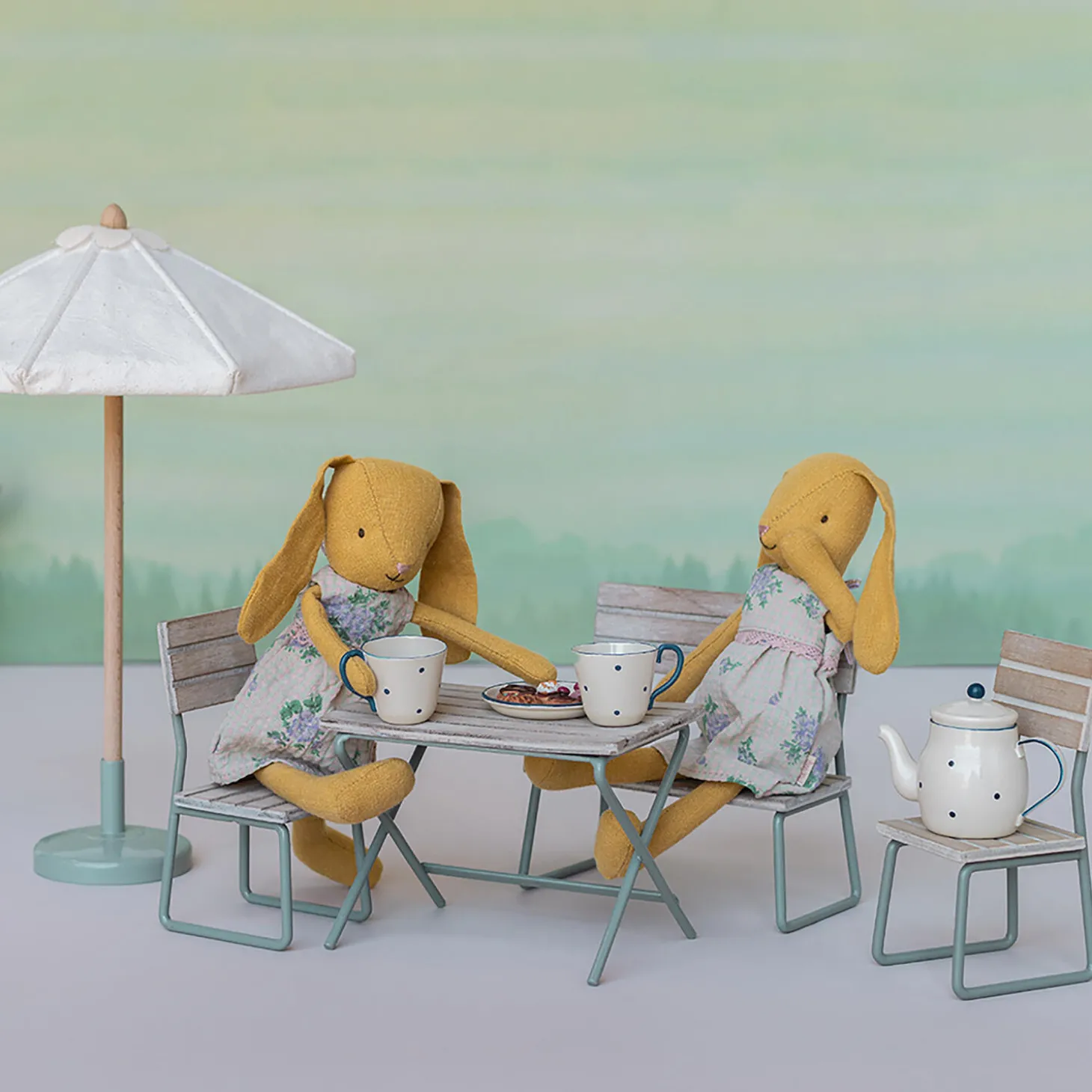 Glem ikke udendørsområderne – dette havesæt er perfekt til alle sommer sammenkomster. Den er lavet i et vintage look og passer til alle kaniner i størrelse 1 og 2 samt Teddy familien. Basen er lavet af metal og toppen er i træ.