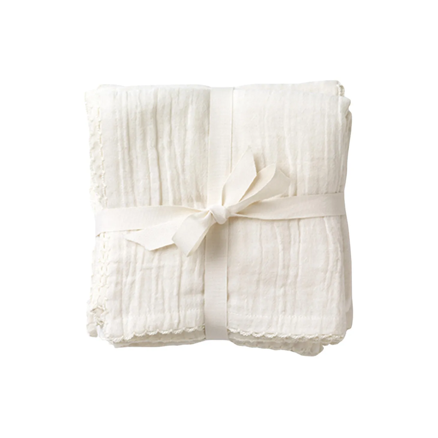 Der er stofbleer – og så er der yndlingsstofbleer. Vi har lavet vores, så de gerne skulle falde i den sidstnævnte kategori. Materialet er den blødeste 2-lags bomuldsmusselin med lille fin hæklet kant i fine prints og farver. De kan bruges i forbindelse med amning, som nusseklud og ved pusletid. Stofbleerne er forvaskede, så de har et fint krøllet look, og dette bliver bare blødere og mere krøllet ved vask. Sælges som små gavepakker i 3-pak med sløjfe omkring.