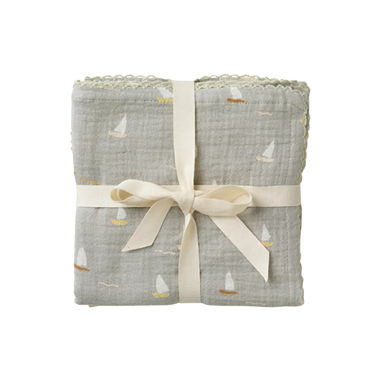 Der er stofbleer – og så er der yndlingsstofbleer. Vi har lavet vores, så de gerne skulle falde i den sidstnævnte kategori. Materialet er den blødeste 2-lags bomuldsmusselin med lille fin hæklet kant i fine prints og farver. De kan bruges i forbindelse med amning, som nusseklud og ved pusletid. Stofbleerne er forvaskede, så de har et fint krøllet look, og dette bliver bare blødere og mere krøllet ved vask. Sælges som små gavepakker i 3-pak med sløjfe omkring.