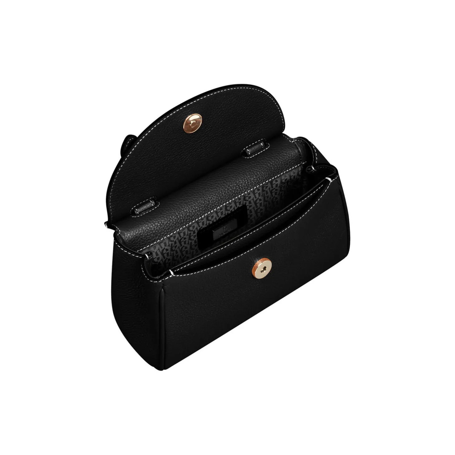 MIRANDA XS Mini-Bag. 24H x 20W x 7D cm. Metal parts: shiny light gold. Grip height: 8.5 cm. Shoulder strap height: 48 – 56 cm, adjustable. Closure: magnetic closure. Stick case: 1.