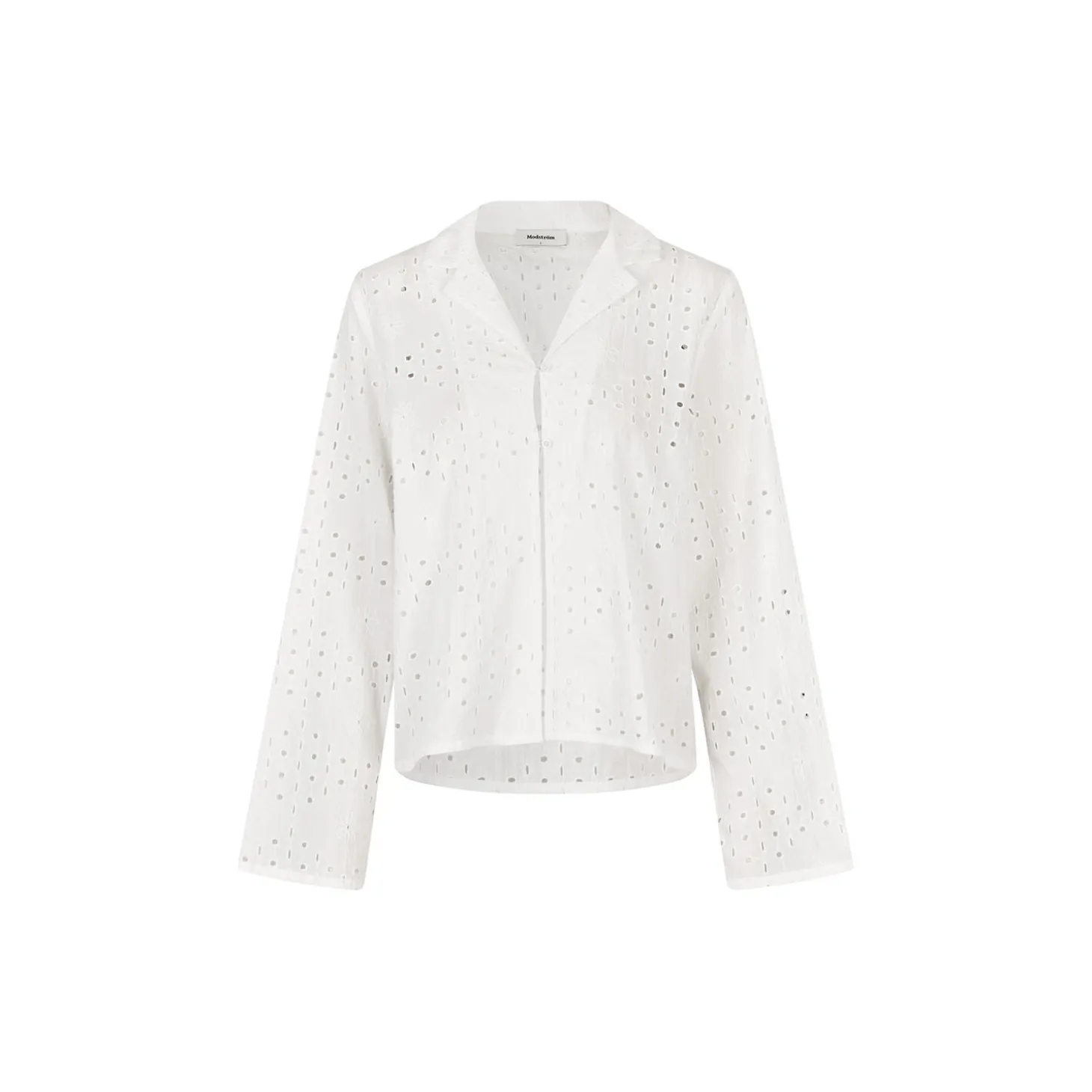 Løs skjorte i broderie anglaise. MisoMD-skjorten har lange brede ærmer og 2 knapper foran.