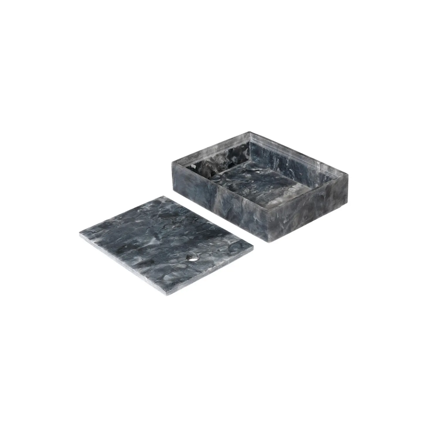 Mist serien er en sofistikeret blanding af legende geometri og funktionelt design. Alle dele i denne finurlige serie giver dig mulighed for at skabe din egen unikke kombination med indbyrdes forbundne former, som kan stables. Mist Æsken er fremstillet af en resinblanding og har flydende, hvirvlende former og æteriske toner, som gør hver enkelt æske helt unik. Perfekt til opbevaring på badeværelset, papirvarer eller som skattekiste, og låget glider ubesværet oven på basen med en lille udskæring, der giver nem adgang. Mist Æsken fås i forskellige størrelser og sælges separat, og den opfylder en række opbevaringsbehov i hjemmet med elegance og stil.