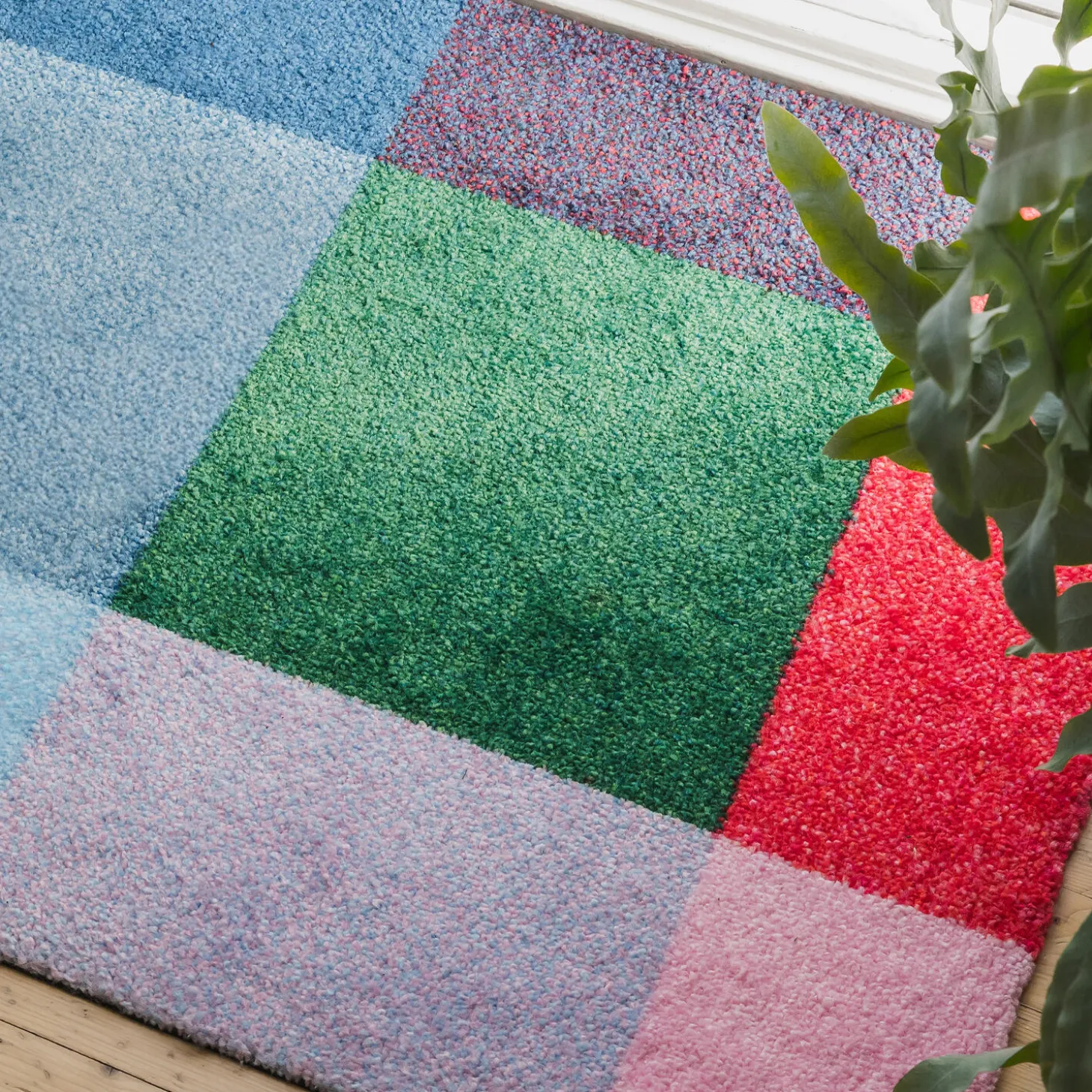 High quality doormats designed for indoor use. The mat has a soft upper surface and rubber backing. Mix Meadow borrows its colour palette from lush flower fields. The clear hues add a breath of fresh air to the surroundings, making Mix Meadow one of our most popular products. Rectangular shapes of blue, green and red meet in different melanges, creating a contemporary pattern reminiscent of traditional, woven textiles. The mat is part of the Mix collection, which also consists of Mix Berry, Mix Forest, Mix Gem and Mix Teklan. *Be aware that width and length can vary 1-2 cm