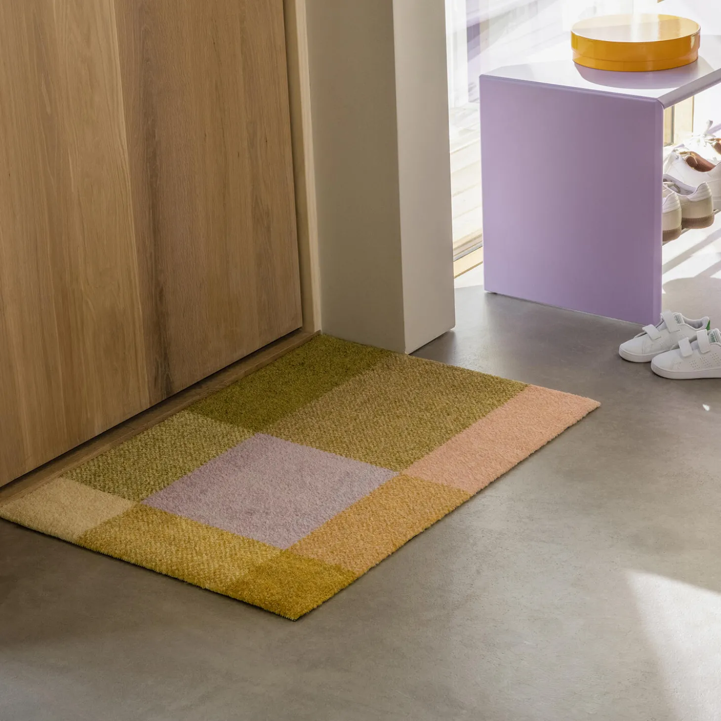 High quality doormats designed for indoor use. The mat has a soft upper surface and rubber backing. Mix Teklan is created by Tekla Evelina Severin, also known as Teklan. With a nod to 70’s color palette, gemstones and the Mediterranean, Tekla has created a contemporary color scheme in earthy pastels that welcome you home. *Be aware that width and length can vary 1-2 cm