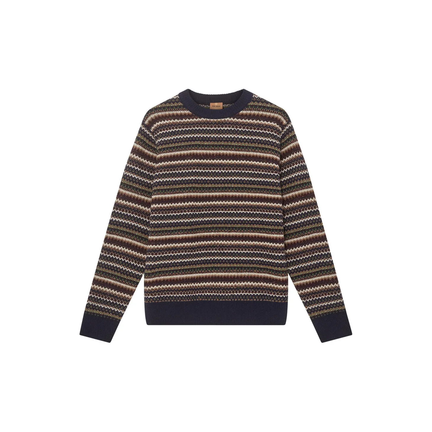 Chunky jacquardstrikket pullover, spundet af uld og bomuld i et flerfarvet stribemønster. Fuldendes af ribkanter og diskret logo bagpå.