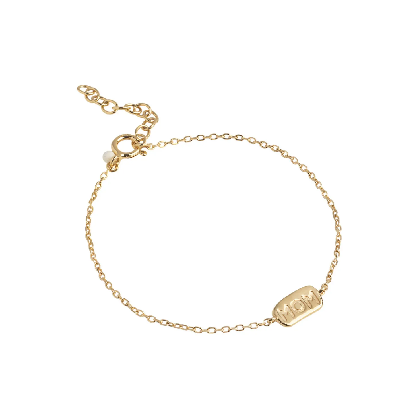 Det simple Mom armbånd i guld, siger mere end 1000 ord, for har vi ikke alle en mor vi godt gad give anerkendelse og taknemmelighed. Mom armbåndet belagt med 18 karat guld er den oplagte gave til en nybagt mor, din egen mor, en mor du ser op til, eller hvilken som helst mor-figur. Historien er din. Mom armbåndet findes også i sølv, og som halskæde og ring.