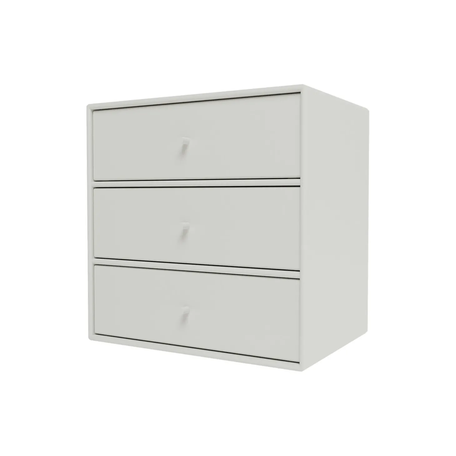 Dette Montana Mini modul kommer med tre hylder og tre skuffebakker. Skufferbakkerne hviler på hylderne og kan tages helt ud af modulet. Modulet kan dermed anvendes både med og uden skuffebakkerne. Skuffebakkerne er hvide og forsynet med en lakeret front i samme farve som modulets hylder og korpus.