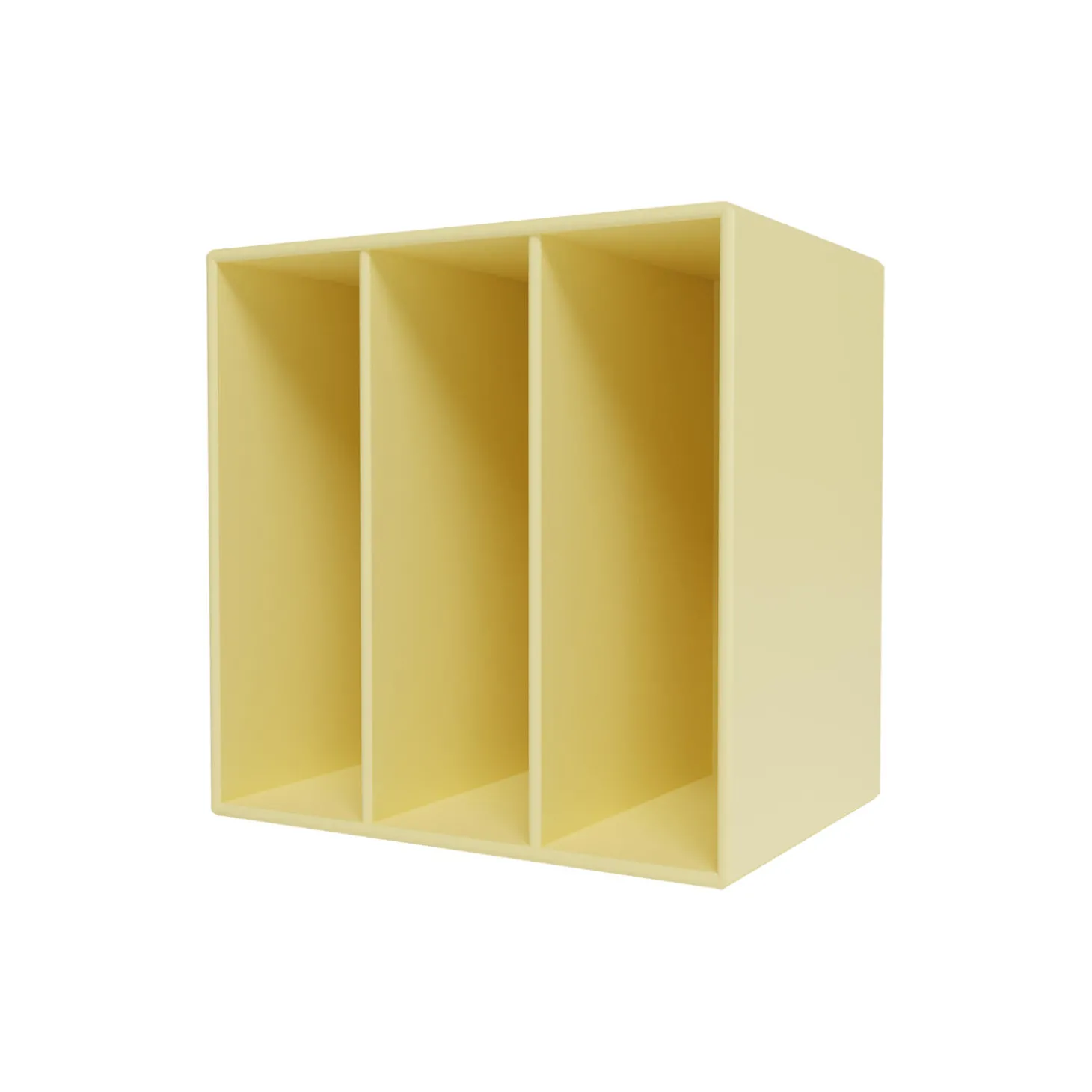Montana Mini med vertikale inddelinger perfekt til at opbevare aviser, blade og magasiner i de smalle rum. Modulet kan vendes således at hylderne fremstår horisontale.