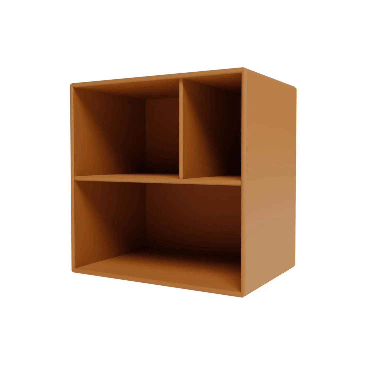 Montana Mini med tre asymmetriske hylderum. Perfekt som displaymodul eller lille sættekasse. På denne version er det største rum placert nederst.