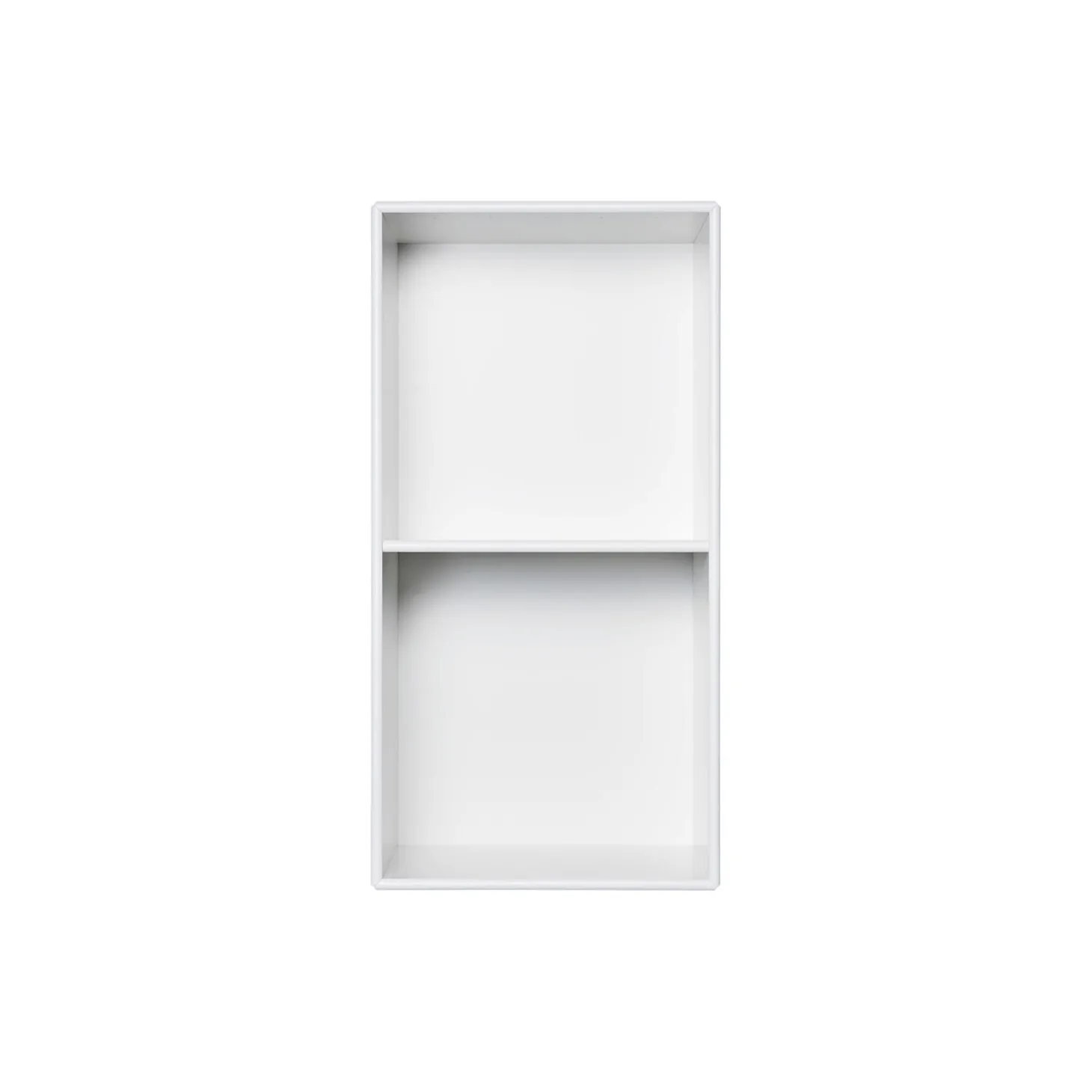 Reolmodul 1261 i MDF fibreboards og lakeret med hvid 01 lak fra Montana. Leveres med ophængsbeslag. Mål: 69,6×35,4×30 cm. Design: Peter Lassen.