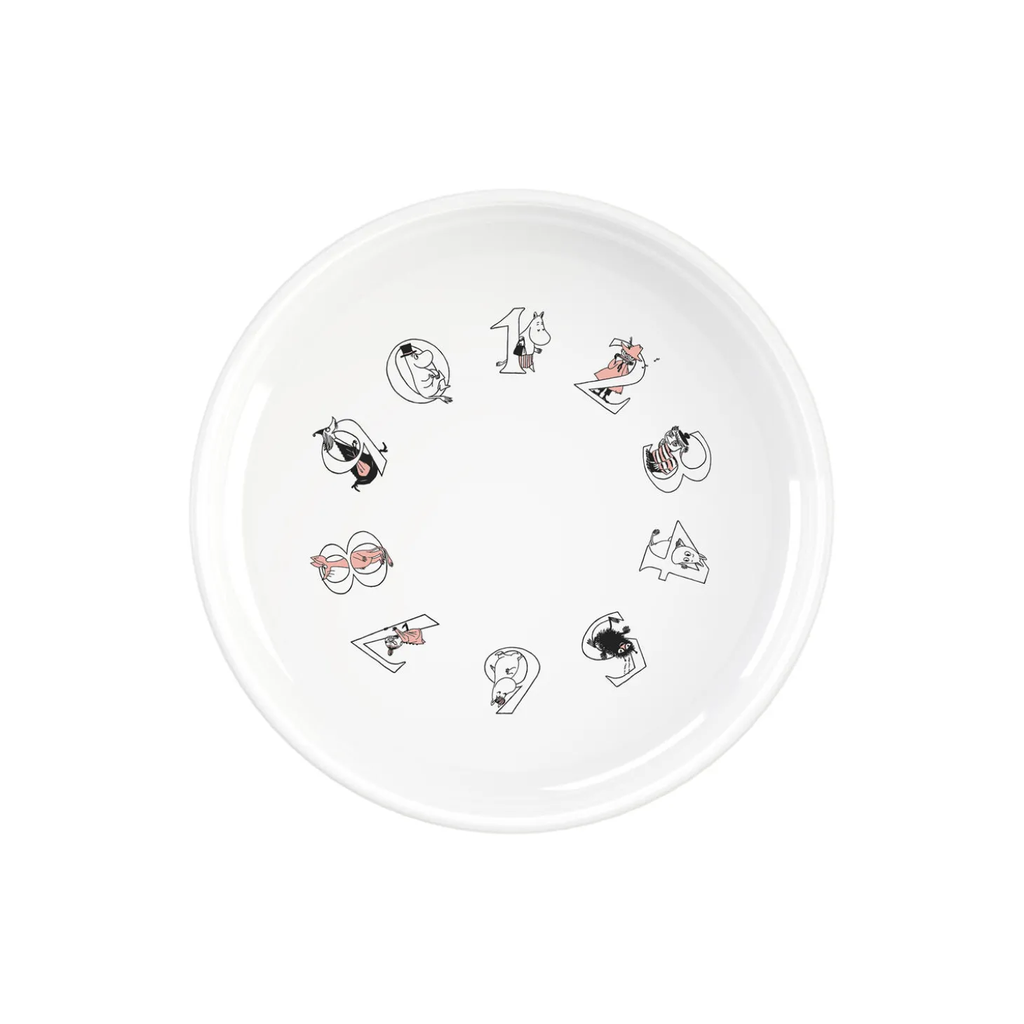 Mumierne er de centrale karakterer i en række bøger og tegneserier af den svensk-finske illustrator og forfatter Tove Jansson. De er en familie af nysgerrige og eventyrlystne trolde, som bor i et hyggeligt lille hus i Mumidalen, hvor de oplever mange spændende ting sammen med deres venner. RIG-TIG støtter Moomin Characters Ltd’s mission om at skabe kærlighed til læsning og skrivning. At kunne udtrykke sig er en af de vigtigste ting i verden: det giver mulighed for at kommunikere håb og drømme, forholde sig til andre, engagere sig i vor tids store spørgsmål og skabe forandringer. Alfabetet, der er designet til Moomin ABC kollektionen, er alle baseret på Tove Janssons originale bogstaver. Udgangspunktet for alfabetet findes i bogen Memoirs of Moominpappa. Den dybe tallerken fra Moomin ABC kollektionen er udviklet specielt til små hænder, med en perfekt runding i bunden, der gør det let at få skeen rundt i hele skålen og for selv de helt mindste at kunne skovle maden op med hænderne og ind i munden. Den dybe tallerken har en god størrelse til både morgenmad og aftensmad. I bunden af skålen er tallene 0-9 afbilledet med de mest velkendte og finurlige figurer fra Mumiernes verden. Grafikken inspirerer til leg med tal og kan hjælpe med at vække barnets interesse for regning og matematik. Den dybe tallerken er lavet af PP plast som er et særdeles holdbart og børnevenligt materiale. Den tåler både mikrobølgeovn og opvaskemaskine og er naturligvis fri for BPA, phtalater og andre skadelige stoffer.