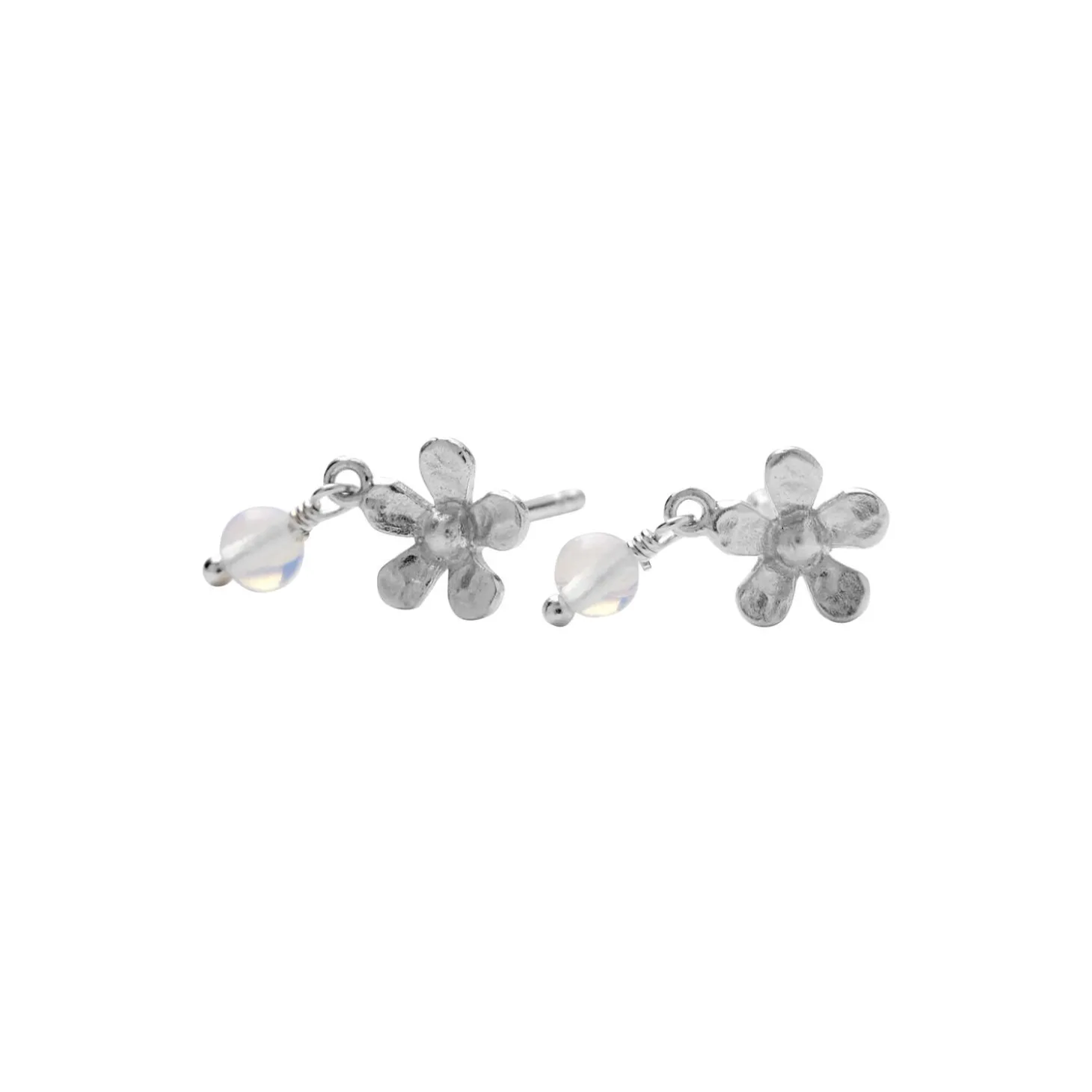 Poppy ørering med blå månesten. Moonstone Poppy Earsticks er en poetisk og elegant fortolkning af naturens ynde – og en smuk tilføjelse til den populære Wild Poppy-serie. Øreringen er designet som en lille valmueblomst med silkebørstet overflade, tilsat en fin blå månesten, som nænsomt hænger fra det ene blad. Øreringene måler 8 mm i diameter og har et smukt, skulpturelt udtryk inspireret af vilde blomster fra naturen. Den blå månesten (ca. 3 mm i diameter) tilfører et diskret strejf af farve og mystik – som et glimt af måneskin fanget i en blomsterdråbe. Et feminint og sanseligt smykke med et roligt udtryk, der passer til både hverdag og særlige øjeblikke. Moonstone Poppy Earsticks er perfekte til dig, der elsker naturinspirerede smykker med et strejf af noget eventyrligt. Øreringene er fremstillet af 100% certificeret genanvendt sterlingsølv.