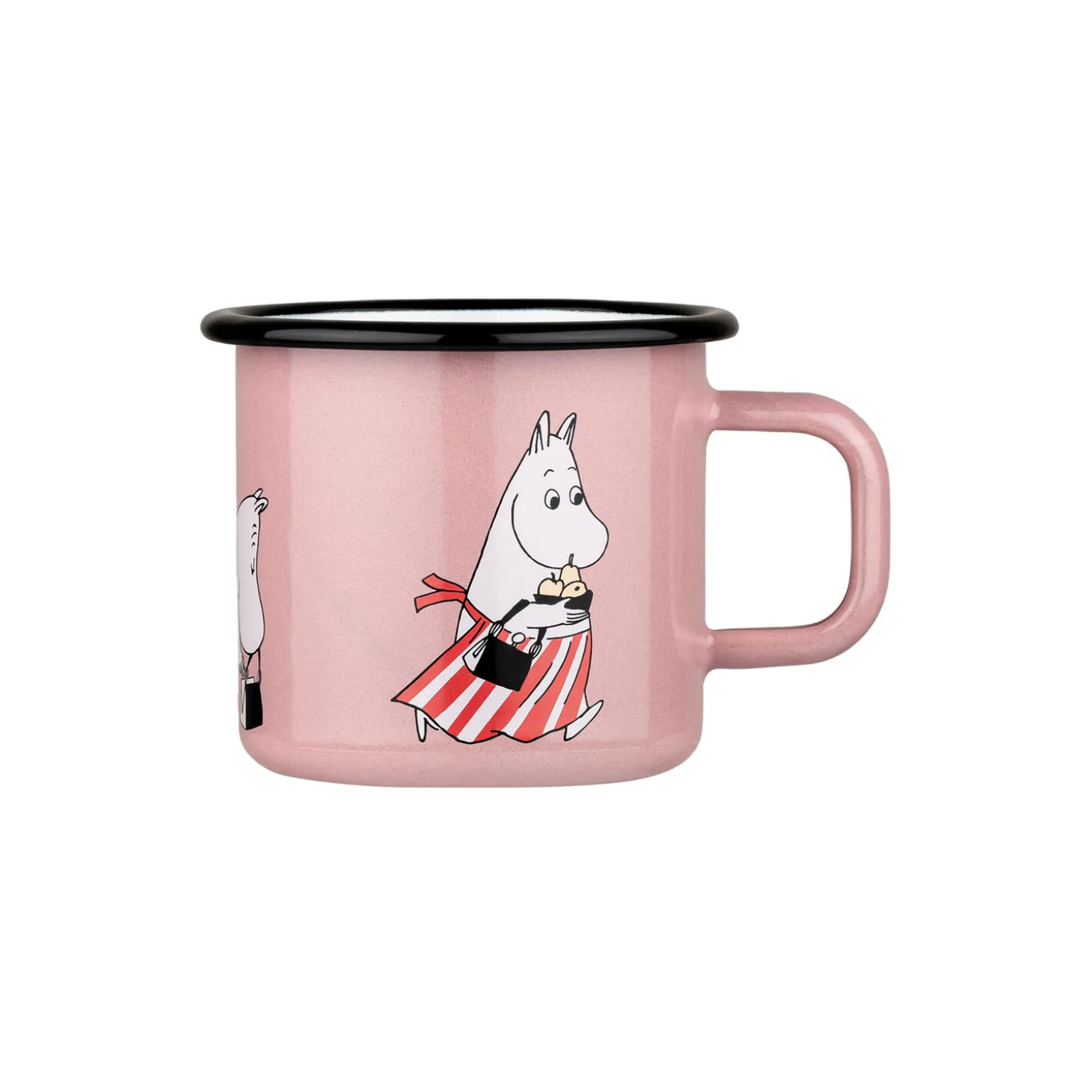 Moominmamma is the a warm and loving character in the Moomin family. She is famous for her cooking skills and she loves to delight her family and visitors of the Moomin house with seasonal treats. The enamel mug is suitable for both hot and cold drinks. Muurla’s enamelware consists of a carbon steel core that carries a double-coating of enamel. The products are durable and light. Due to these traits the items can also be used outdoors, in addition to traditional settings. Dishwasher safe. Do not put in microwave oven.