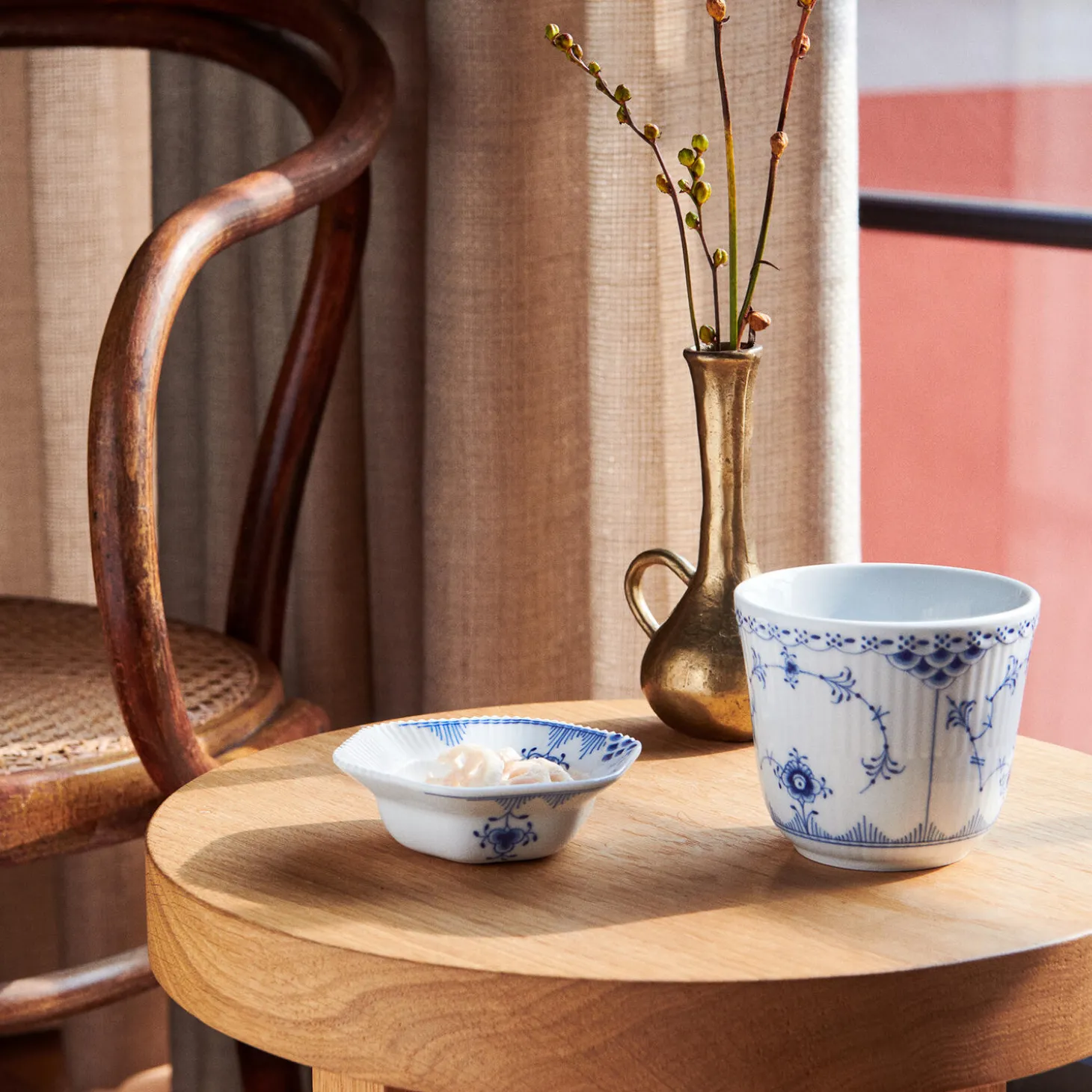 Musselmalet Halvblonde termokop i porcelæn fra Royal Copenhagen. Det klassiske termokrus i Musselmalet Halvblonde. Tro mod sit design holder den drikkevarer varme i lang tid. Selvom mønsteret er fra 1888, føles dette krus moderne og frisk.
