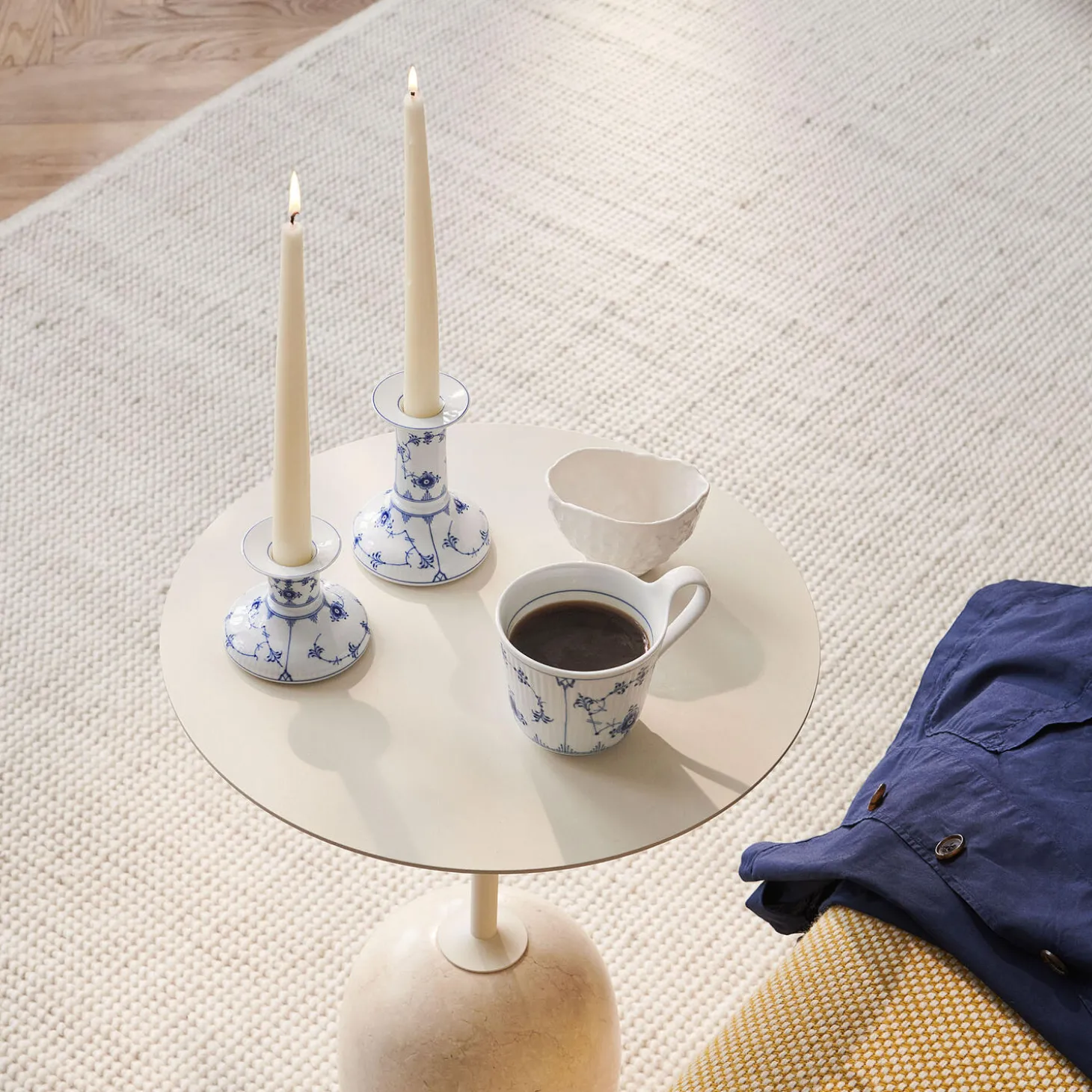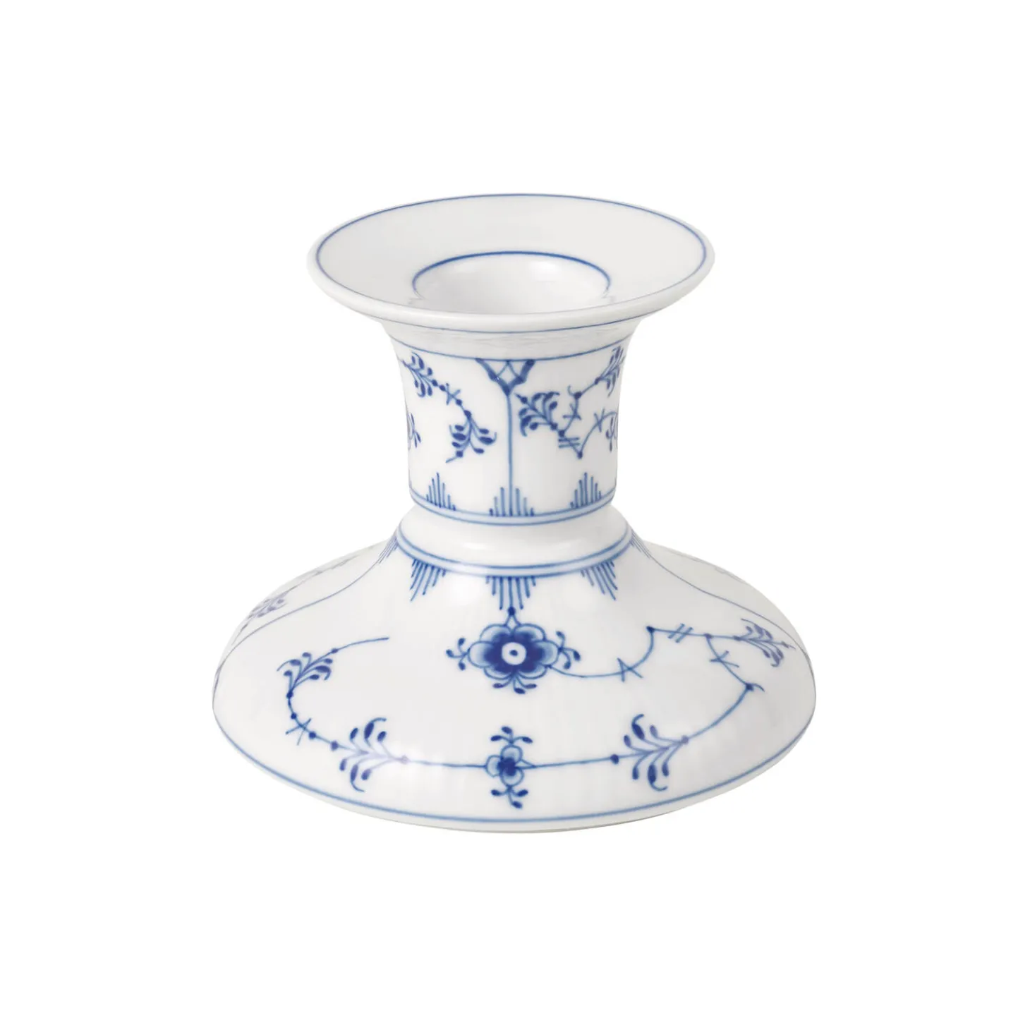 De to lysestager i Musselmalet Riflet er inspireret af designs fra Royal Copenhagens designarkiver. Det klassiske mønster udfolder sig elegant over lysestagernes rundede base og slanke hals, og en fin, blå streg indrammer toppen. Lysestagerne passer til standard lys. En smuk gave – sammen eller hver for sig.