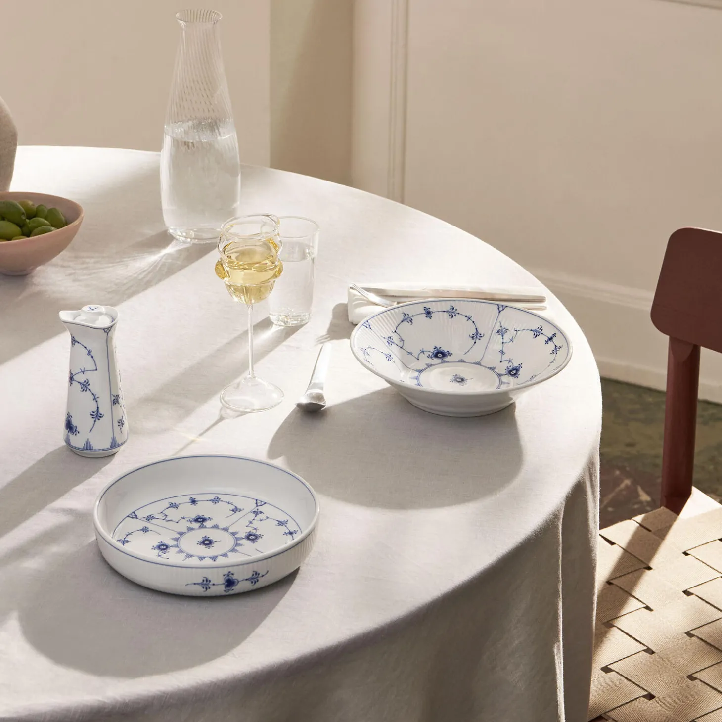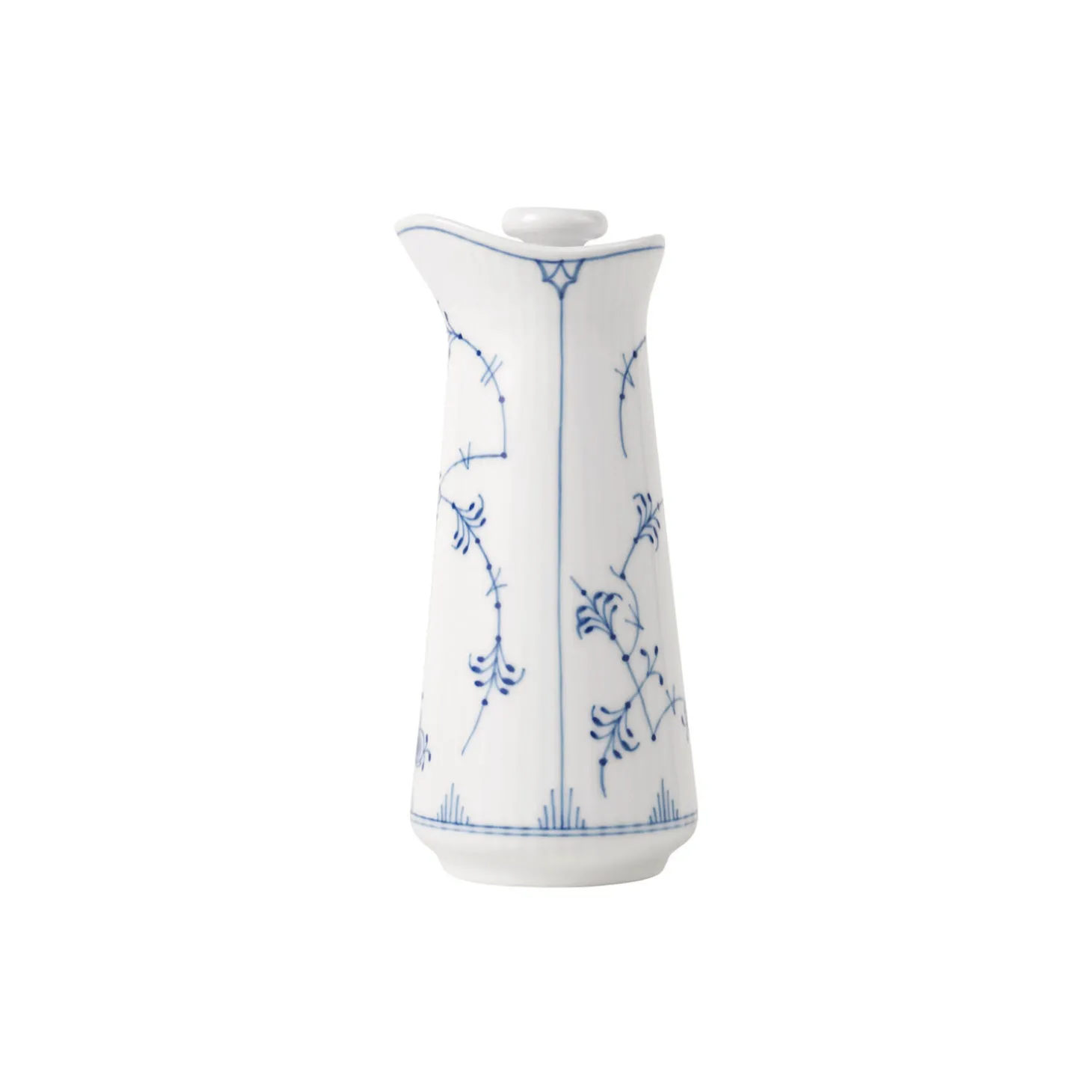 Musselmalet Riflet olie- og eddikeflasken er lige så elegant som den er funktionel. Flasken er designet til at ligge godt i hånden, og mundingen sikrer et drypfrit hæld. Flasken er et perfekt match til Musselmalet Riflet salt- og peberkværnen som et smukt og funktionelt sæt.