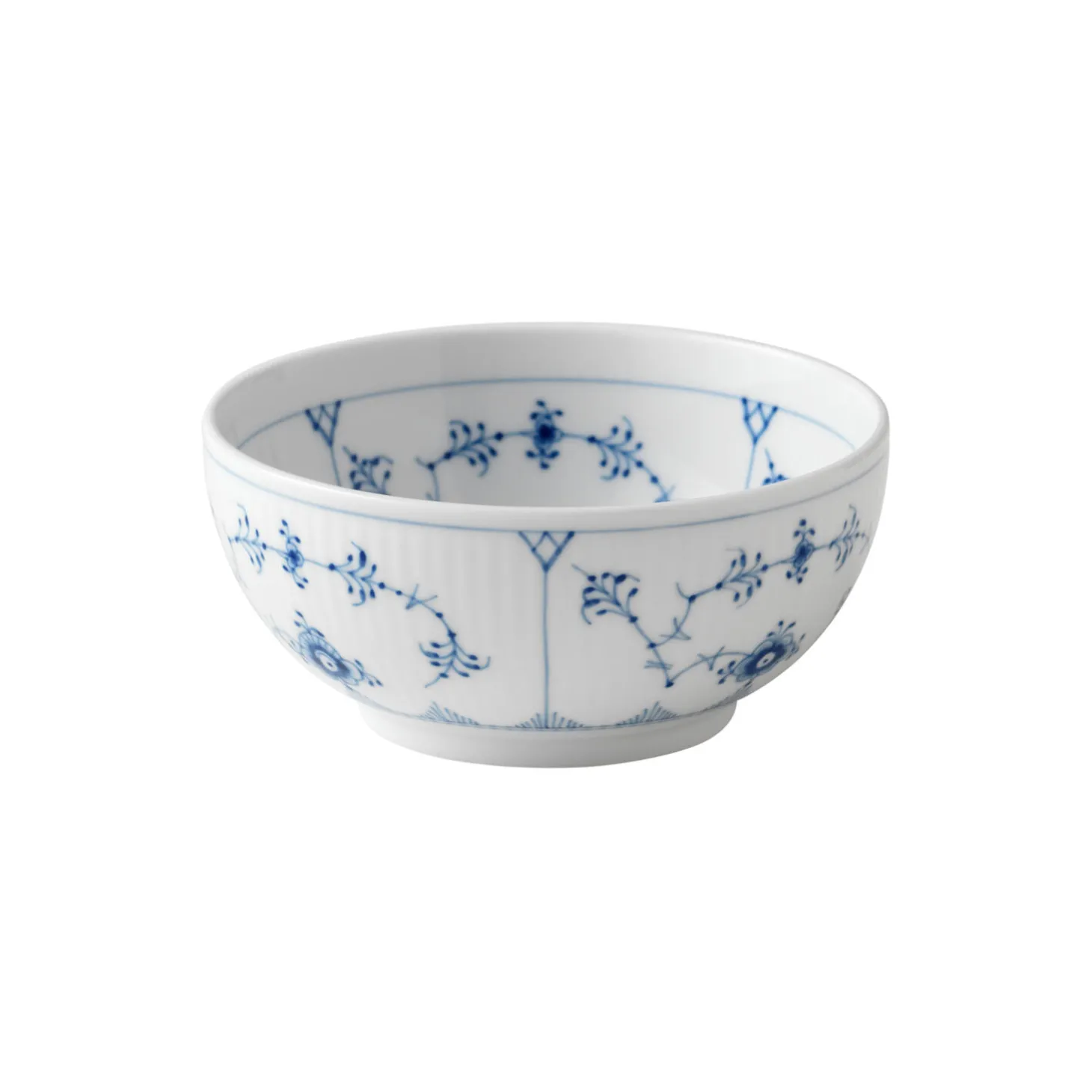 Musselmalet Riflet skål i porcelæn fra Royal Copenhagen. Den lille skål er anvendelig til små fristelser, din morgenmad og hvad hjertet ellers begærer. Skålen er smukt håndmalet i Musselmalet Riflet mønstret med stiliserede palmetter og blomster. Royal Copenhagens første stel fra 1775, Musselmalet Riflet, fortryller med sin klassiske alsidighed og er stadig i dag evigt tidløst. Stellets elegante mønster understreger porcelænets fine formsprog og håndværket bag hver enkelt stykke porcelæn. Musselmalet Riflet er det perfekte udgangspunkt for en personlig samling af Royal Copenhagen.