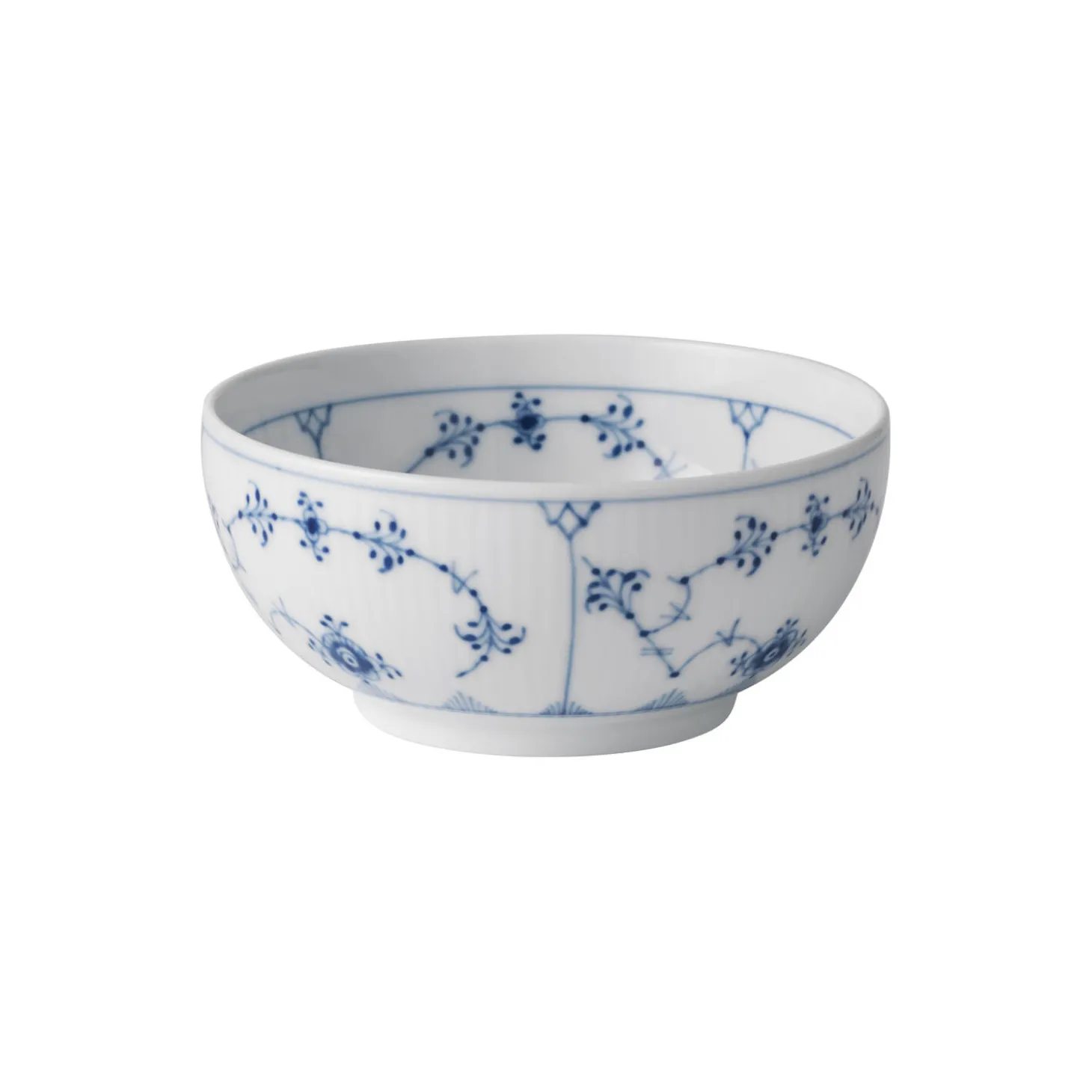 Musselmalet Riflet skål i porcelæn fra Royal Copenhagen. Denne yndefulde Musselmalet Riflet skål har smukke, håndmalede detaljer i et uendeligt bånd langs skålen. Brug den som serveringsskål til dine livretter eller et dekorativt blikfang. Royal Copenhagens første stel fra 1775, Musselmalet Riflet, fortryller med sin klassiske alsidighed og er stadig i dag evigt tidløst. Stellets elegante mønster understreger porcelænets fine formsprog og håndværket bag hver enkelt stykke porcelæn. Musselmalet Riflet er det perfekte udgangspunkt for en personlig samling af Royal Copenhagen.