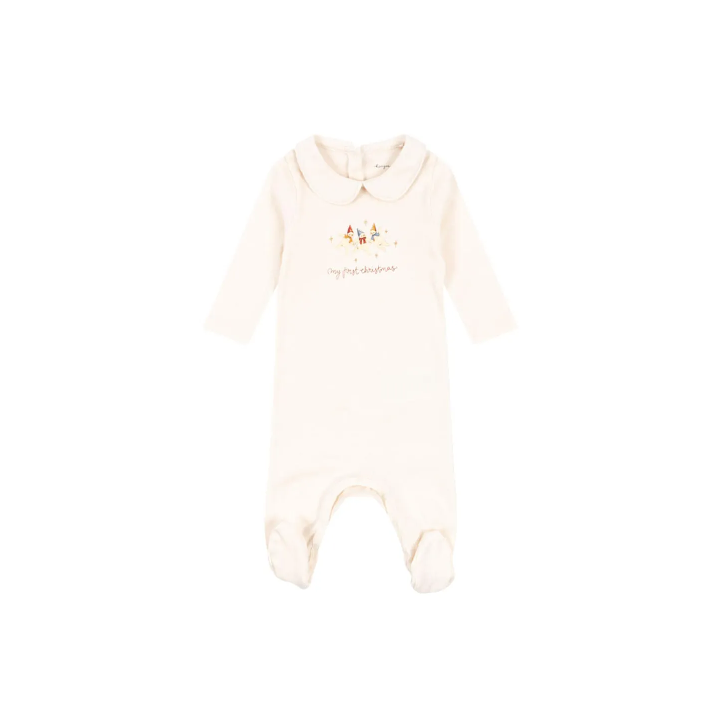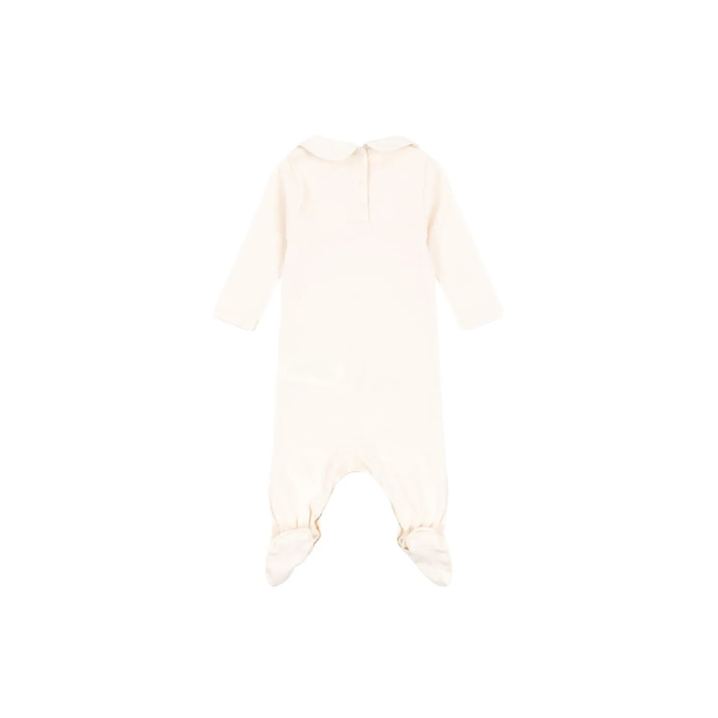 Soft cotton onesie with a decorative collar and snap buttons along the legs.Made from 100% organic cottonGOTS, Organic, certified by CU1094701