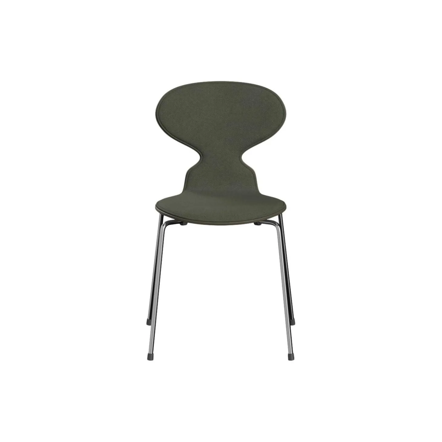 Myren™ 3101 forsidepolstret stol med skal i farvet asketræsfinér, forsidepolstring i Fiord 961 tekstil af Kvadrat og stel i forkromet stål fra Fritz Hansen. Farve: olive green/Fiord 961. Mål: H: 81 x B: 52 x D: 48 cm. Siddehøjde: 46 cm. Design: Arne Jacobsen.