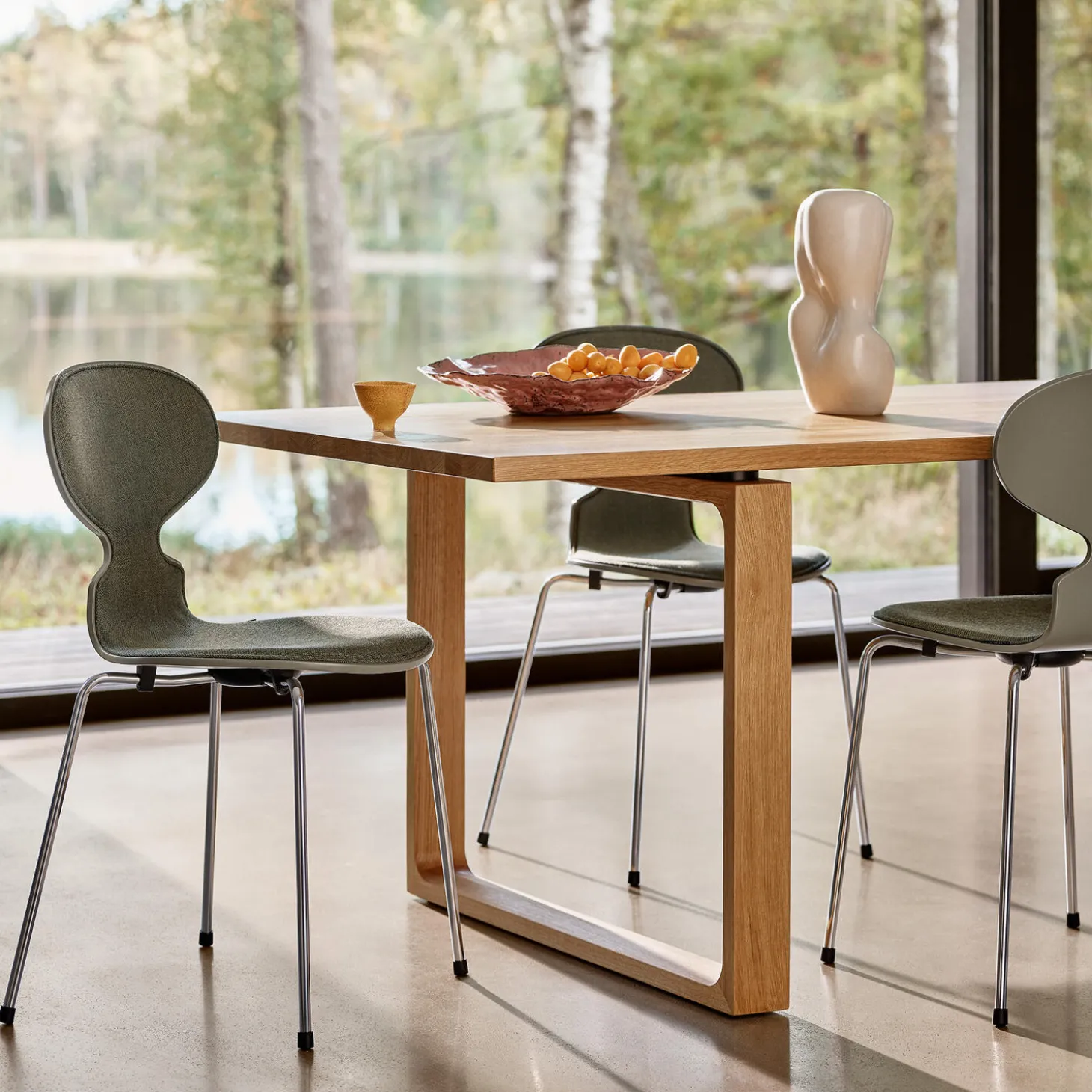 - Materiale: skal i farvet asketræsfinér, forsidepolstring i Fiord 961 tekstil af Kvadrat og stel i forkromet stål