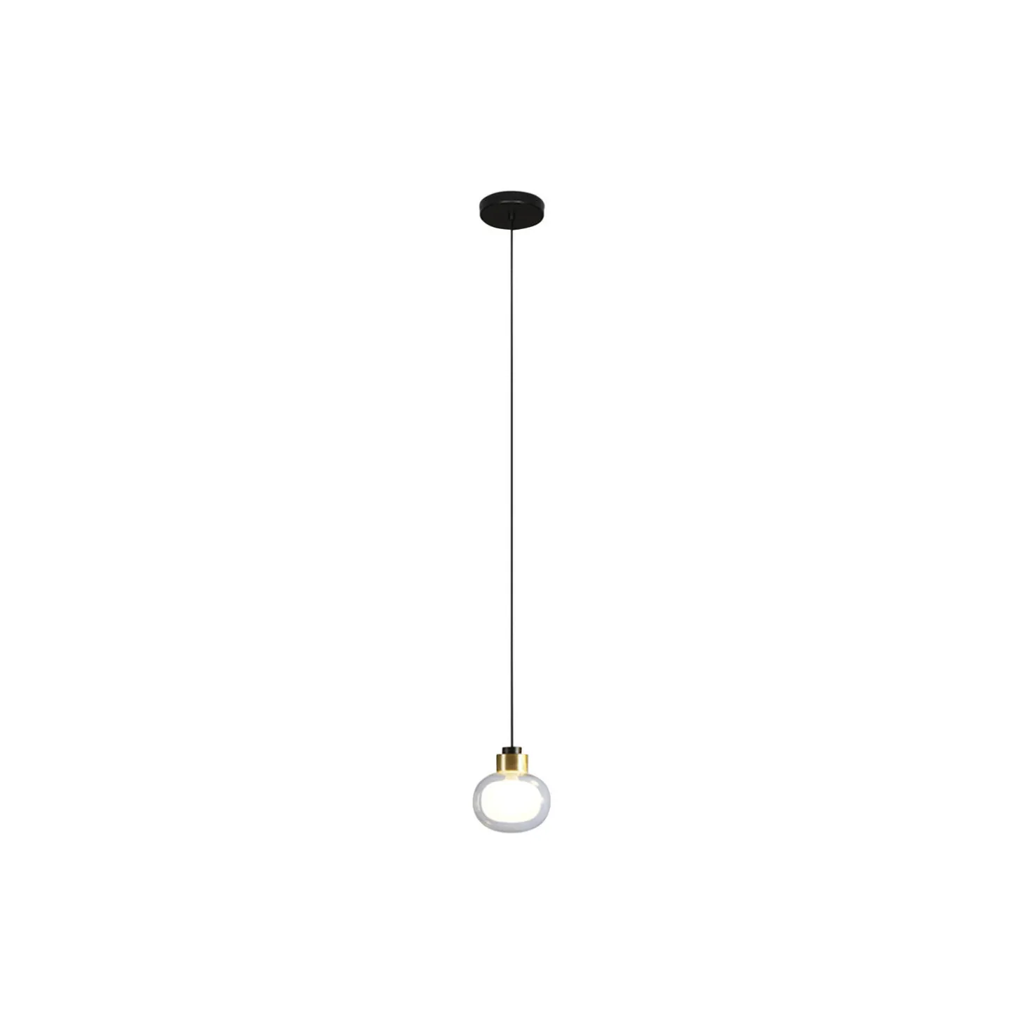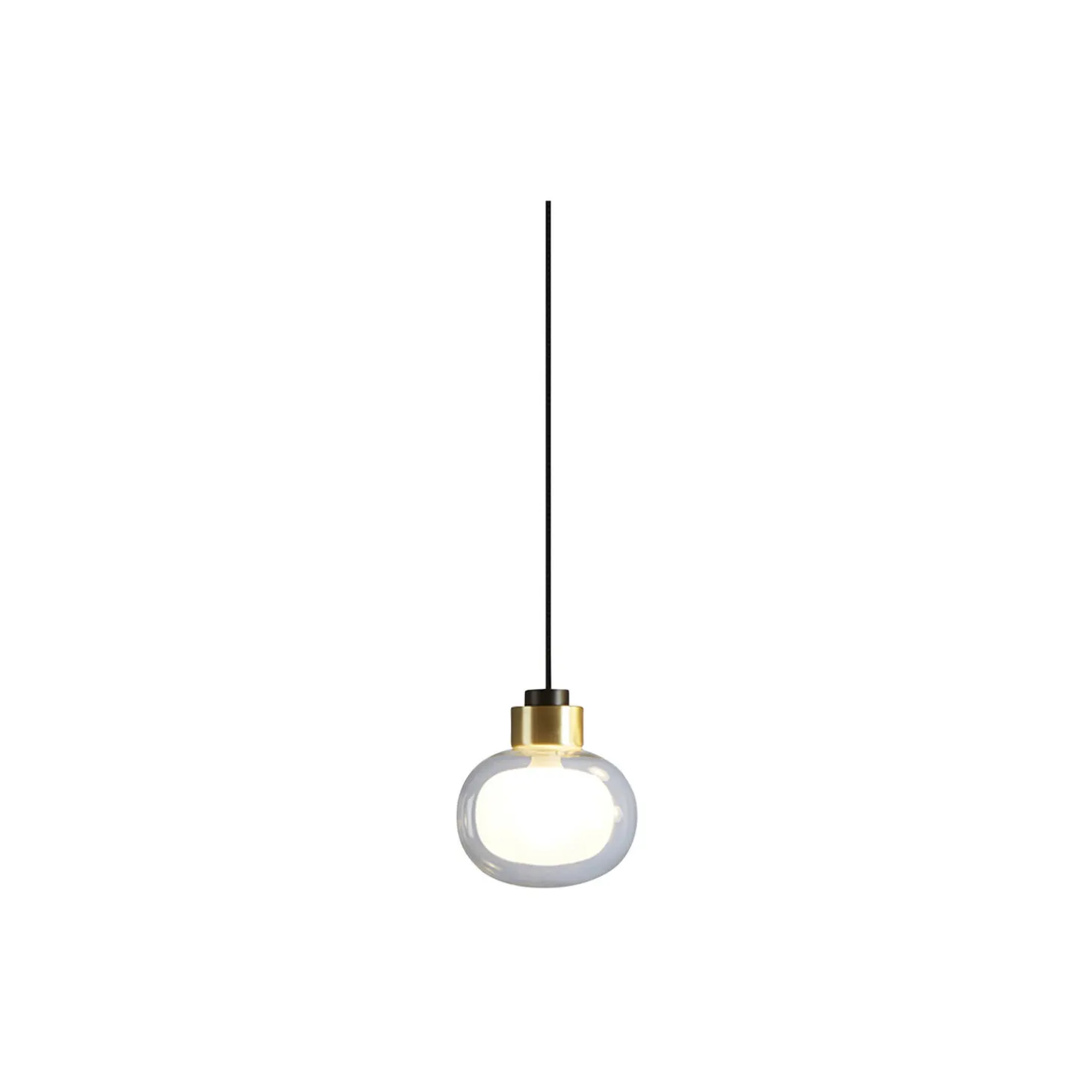 NABILA pendel i aluminium, børstet messing og glas fra Tooy. Farve: mat sort/børstet messing/klart glas. Mål: H: 17,5 x Ø 16 cm. Lyskilde: maks. 10W G9 220/240V. Design: Corrado Dotti.