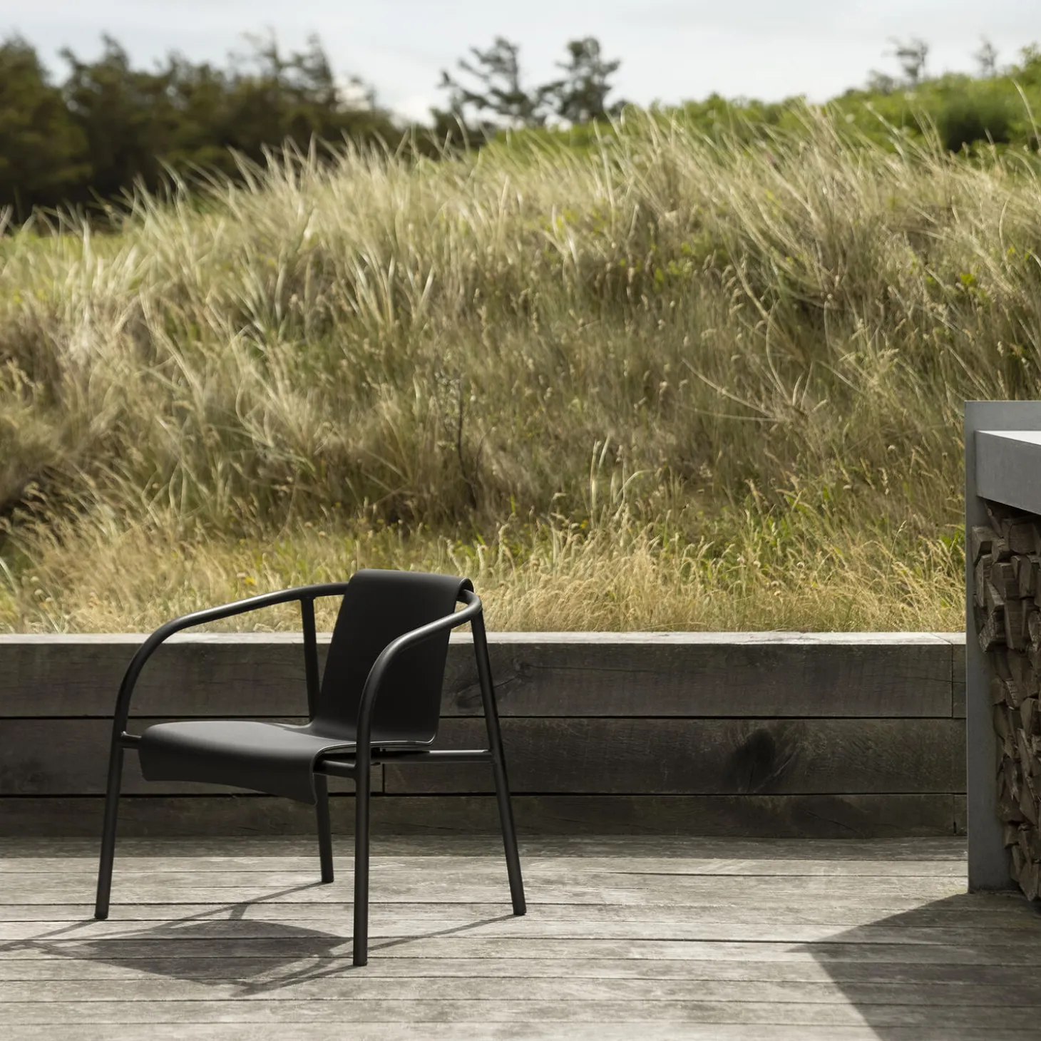 NAMI loungestol i pulverlakeret stål og plast fra HOUE. Farve: black. Mål: H: 63 x B: 66 x D: 60 cm. Siddehøjde: 36 cm. Design: Hans Thyge & Co.