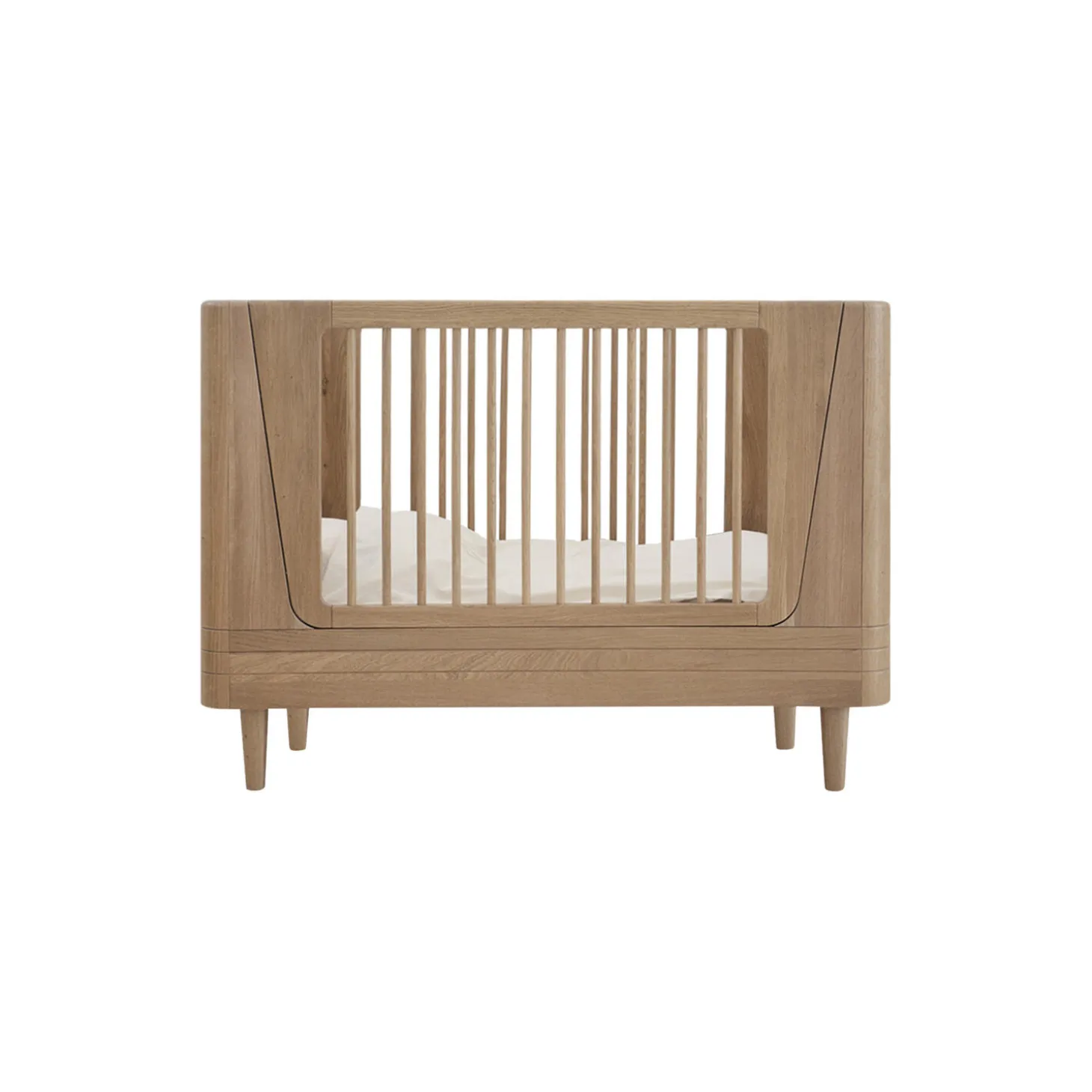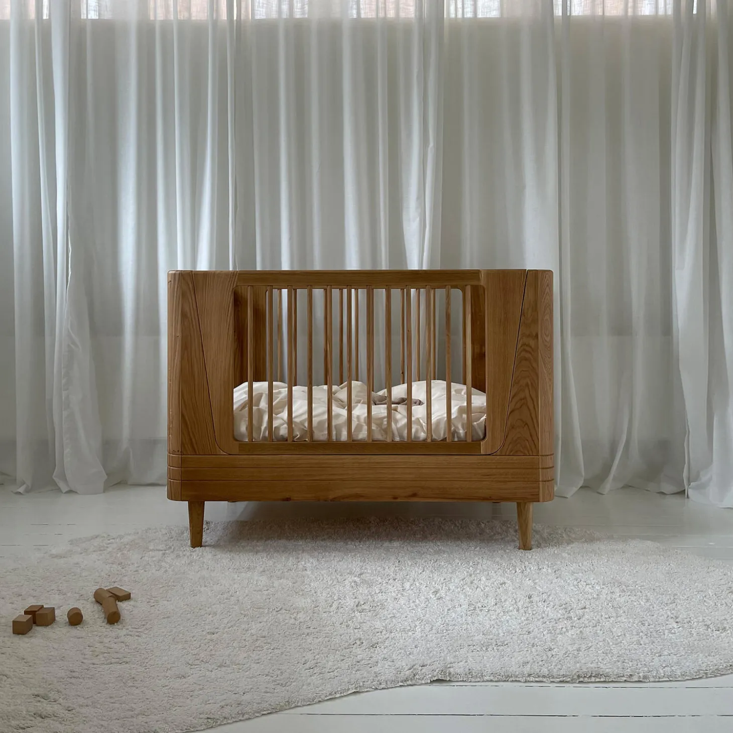 En smuk tremmeseng i massivt egetræ fra We Are Bitte, som nu er lavet i en endnu smukkere version – nemlig helt uden synlige skruer!