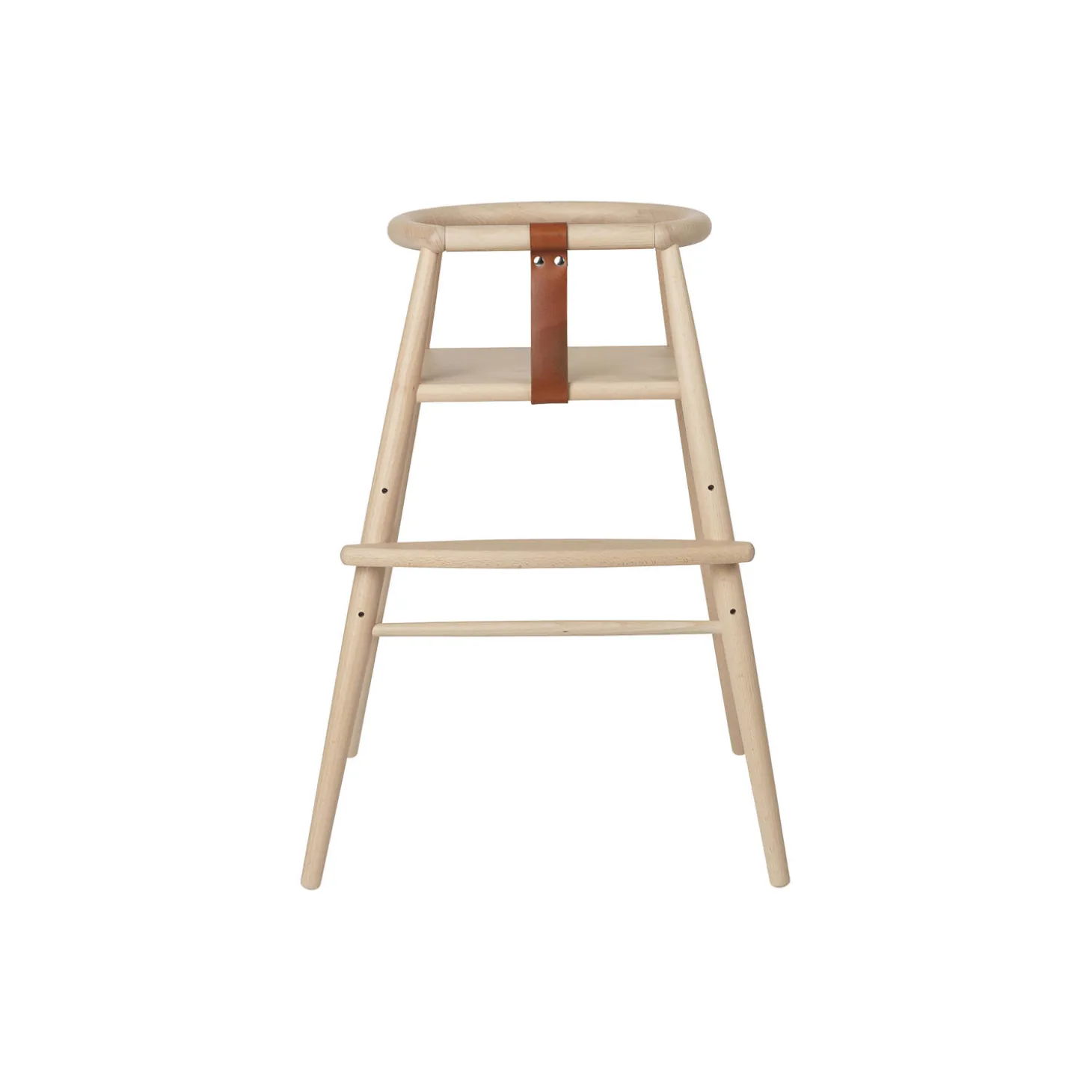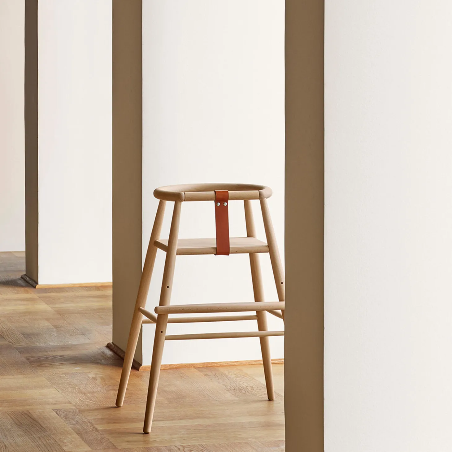 ND54 Højstol i matlakeret bøg med strop i kernelæder fra Carl Hansen & Søn. FSC®-certificeret. Farve: matlakeret bøg/cognac. Mål: H: 70,5 x B: 51 x D: 52 cm. Siddehøjde: 53,5 cm. Fodstøtte: 30,5/37/43,5 cm. Design: Nanna Ditzel. 3 plader i rustfrit stål til indgravering af navne medfølger.