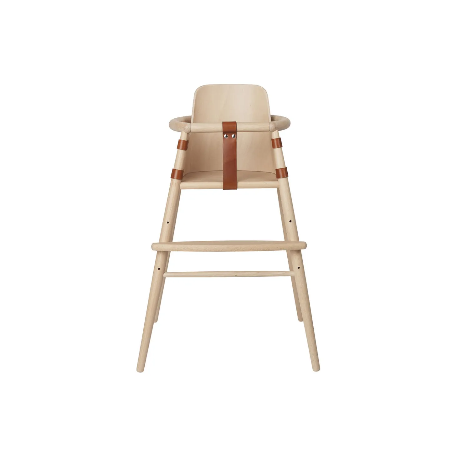 ND54S Babyindsats til ND54 Højstol i matlakeret bøg med stropper i kernelæder fra Carl Hansen & Søn. FSC®-certificeret. Farve: matlakeret bøg/cognac. Design: Nanna Ditzel.