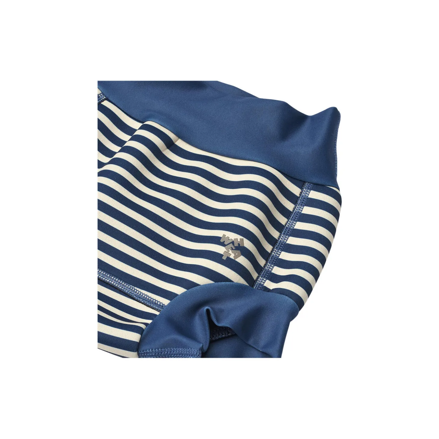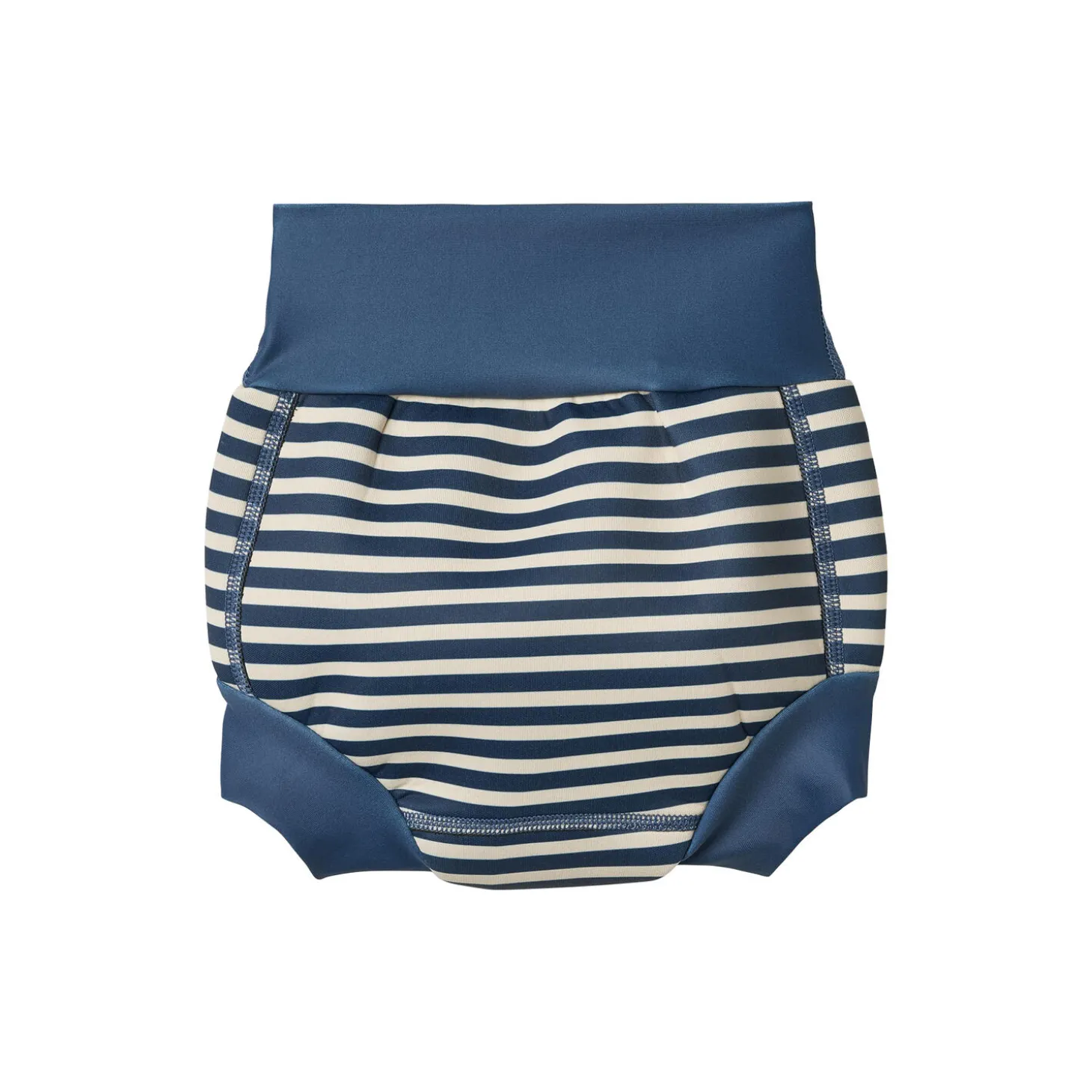 Wheat’s swimwear is perfect for a day at the beach or swimming pool. All our swimwear is predominantly made in recycled polyester and is comfortable to wear and move in.The swim pants have a wide hem at the waist and legs to secure a great fit. The hems around the legs close tightly, while still having room for a swim diaper. These neoprene pants are a true essential and are perfect for the swimming pool – and baby’s first swimming lessons.